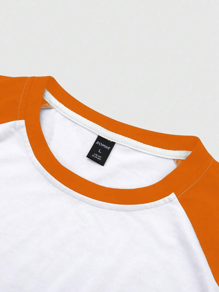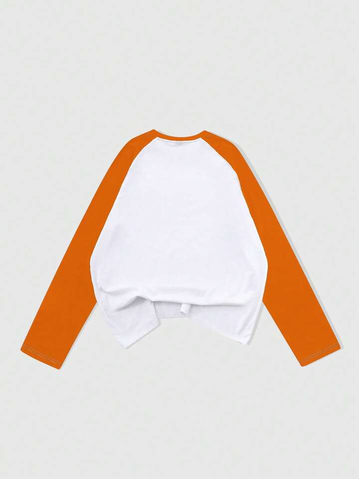 Paul Frank X ROMWE Camiseta casual de manga raglán con estampado de mono y contraste, otoño