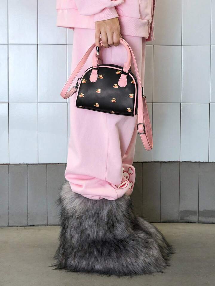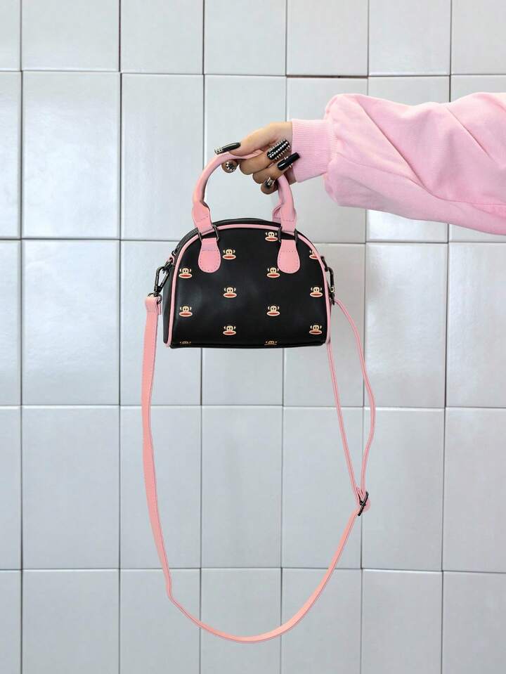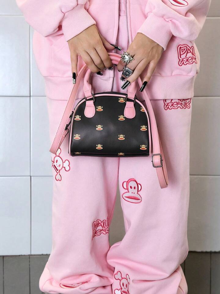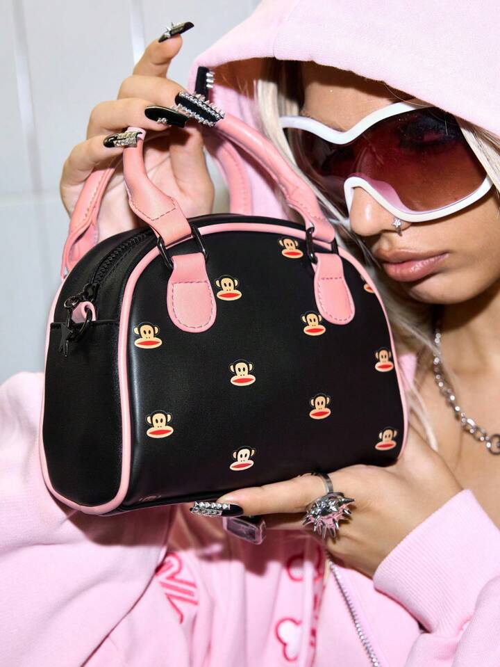 Paul Frank X ROMWE Bolso de bowling de impresión de dibujos animados de PU, bolso de viaje, adecuado para ir a la oficina, viajar, de vacaciones, como regalo