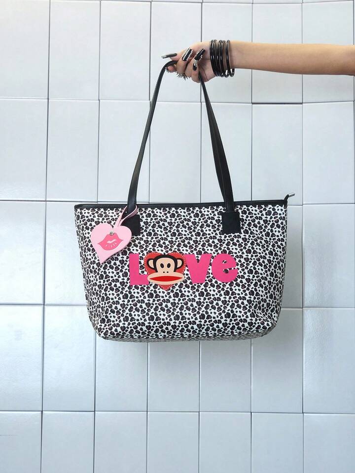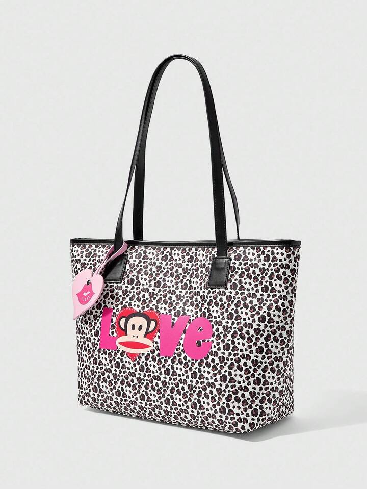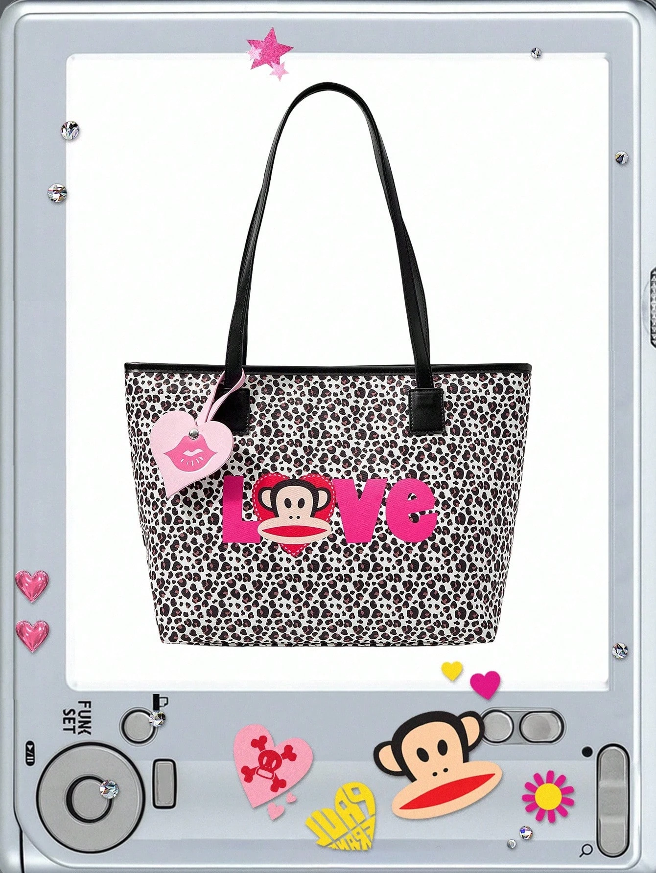 Paul Frank X ROMWE Bolso de mano multifuncional de estilo vintage Y2K con estampado de leopardo para mujeres