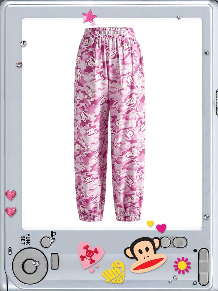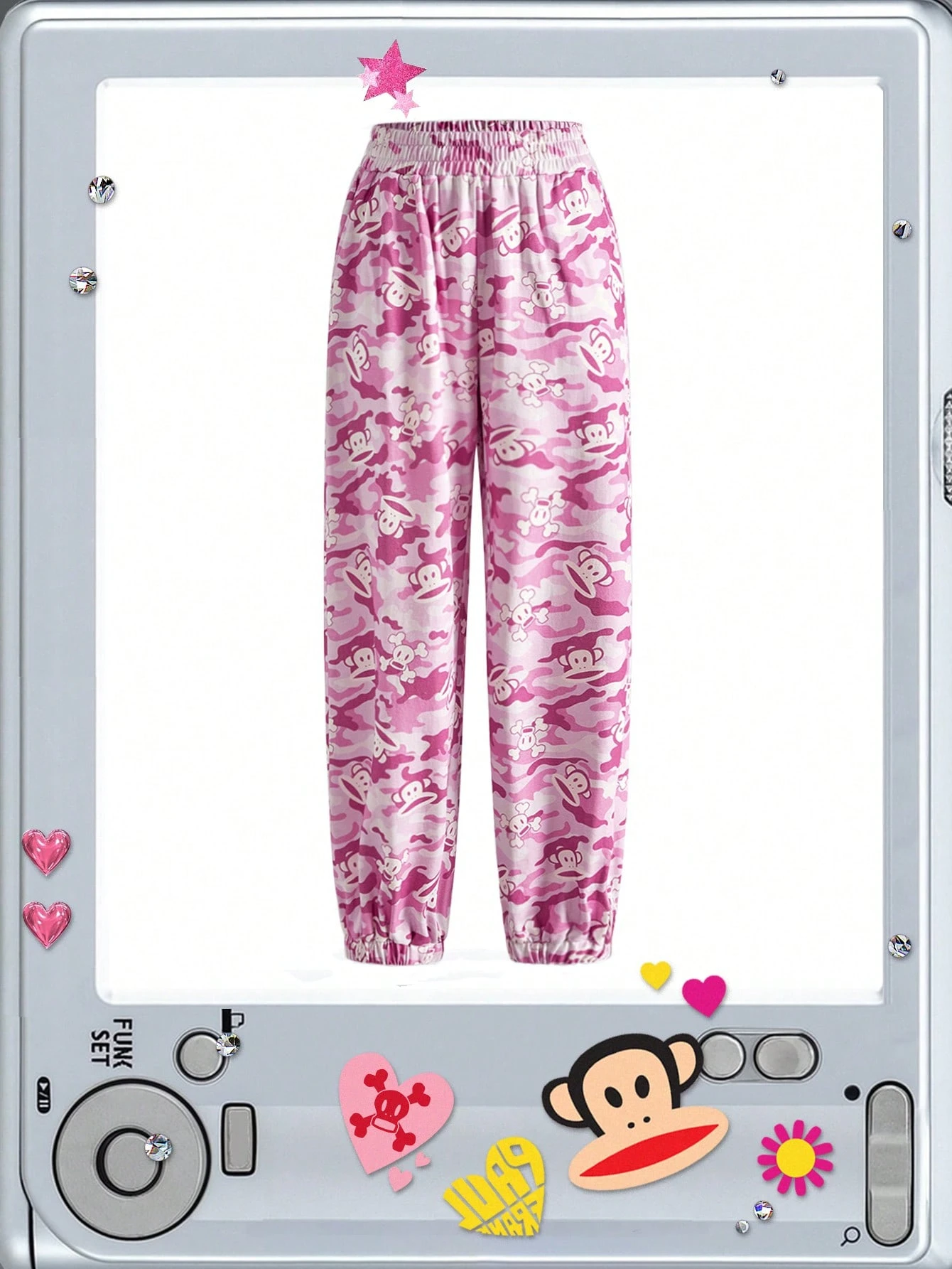 Paul Frank X ROMWE Pantalones de chándal holgados con estampado camuflaje all-over de la subcultura callejera Baddie Kpop Y2K