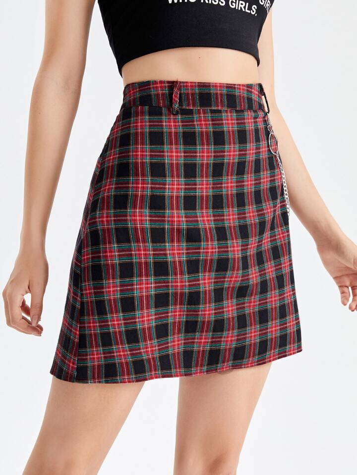 Falda de cuadros con cadena
