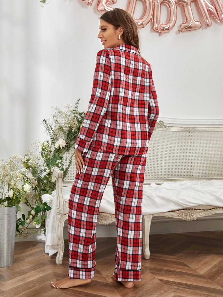 Conjunto de pijama con blusa y pantalón con bolsillo y estampado a cuadros
