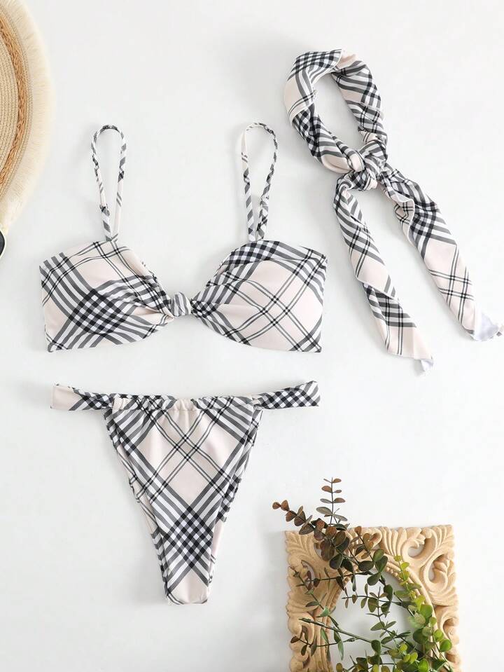 de cuadros Bañador bikini tanga con Pañuelo