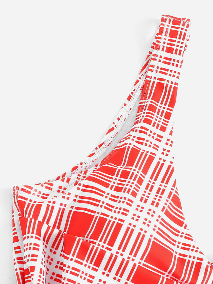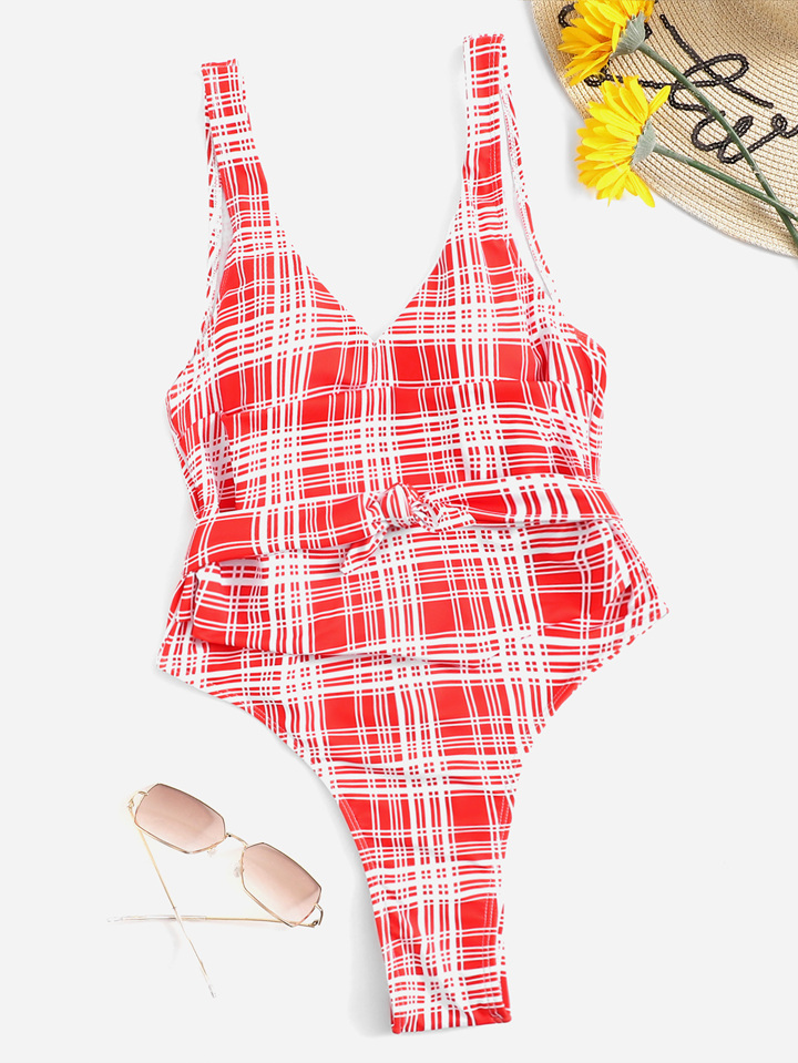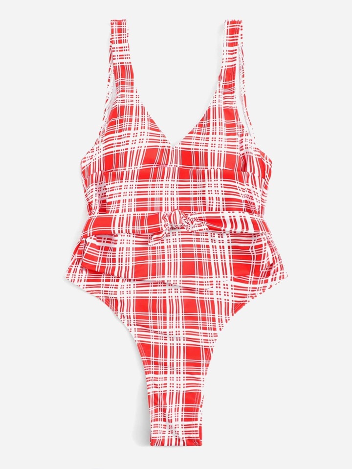 Bañador a cuadros con espalda baja con cinturón, traje de baño de una pieza