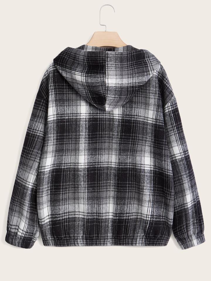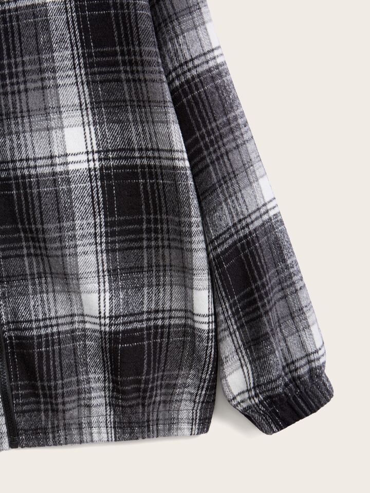Abrigo con capucha de cuadros con cremallera