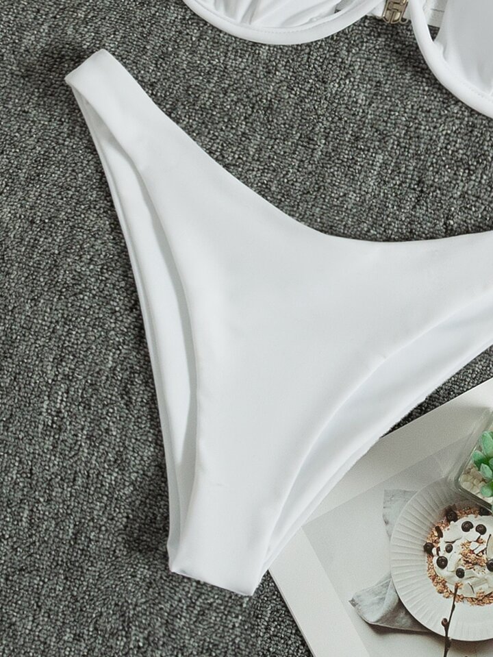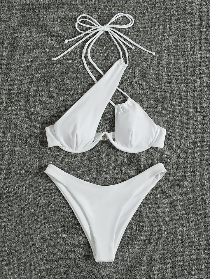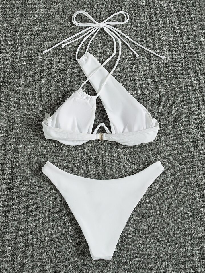 Bikini sin estampado con diseño cruzado que levanta el busto, ideal para el verano y vacaciones en la playa