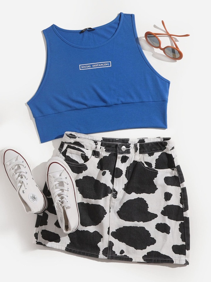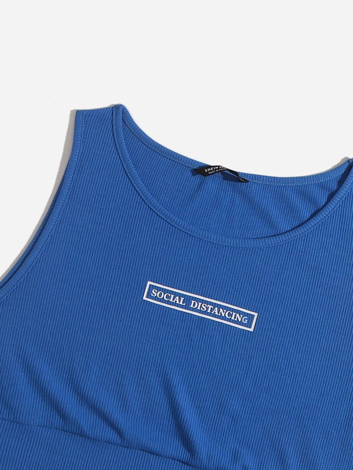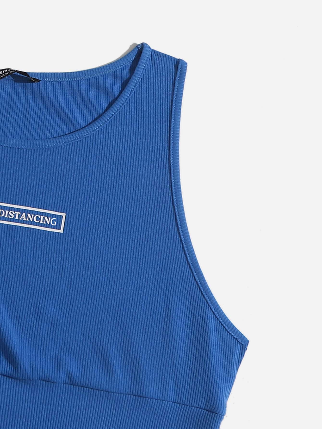 1 pieza Top tank corto tejido de canalé con estampado de letra