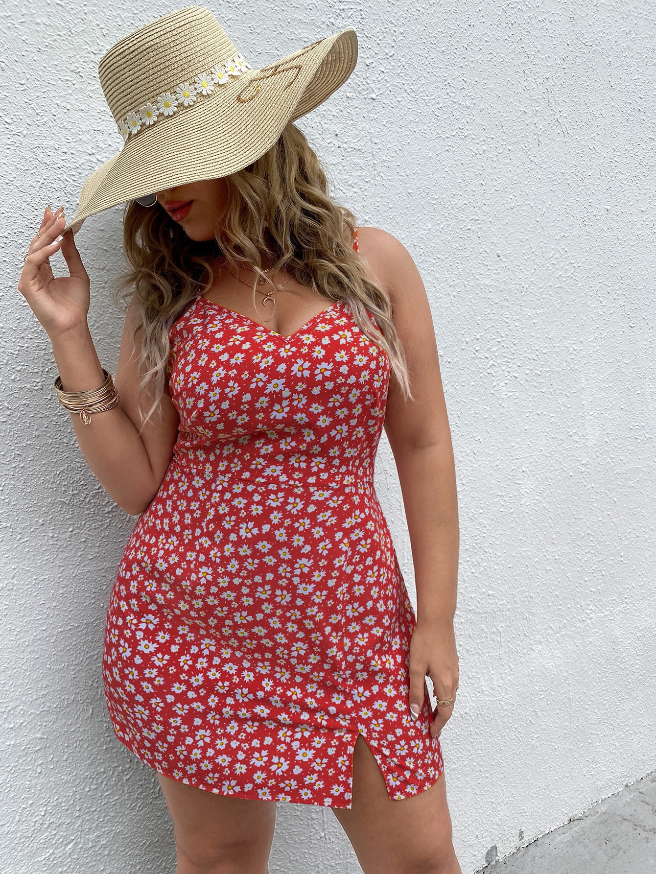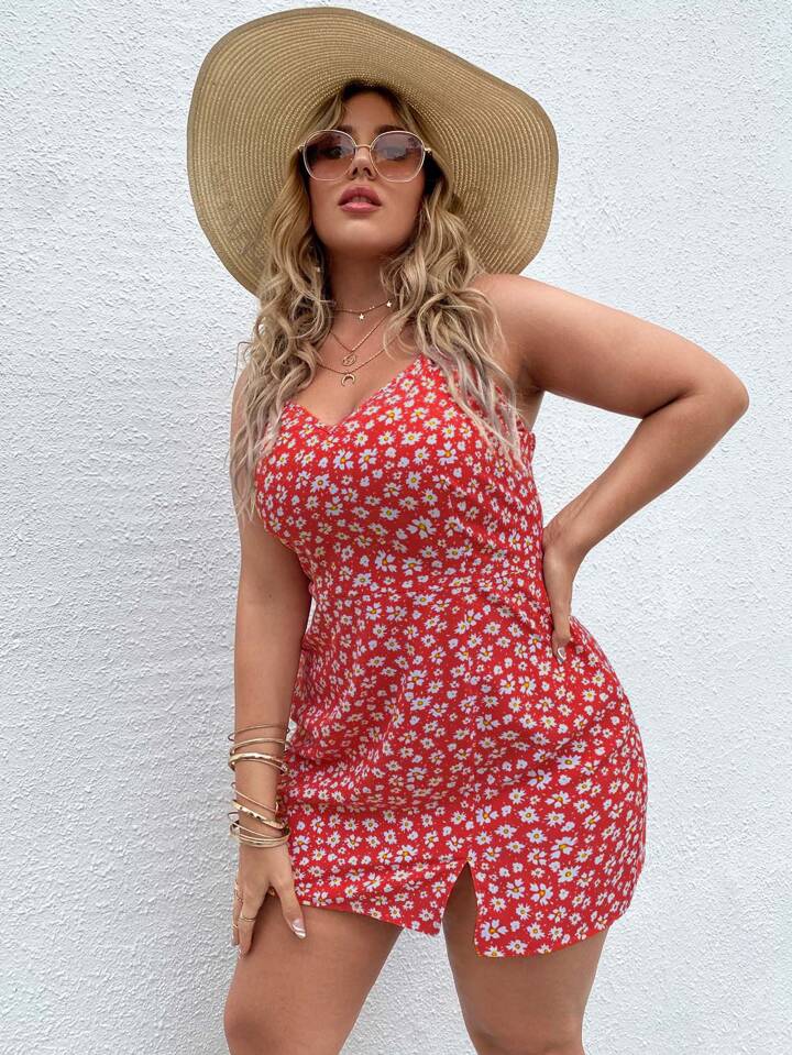 Vestido de tirantes bajo con abertura floral