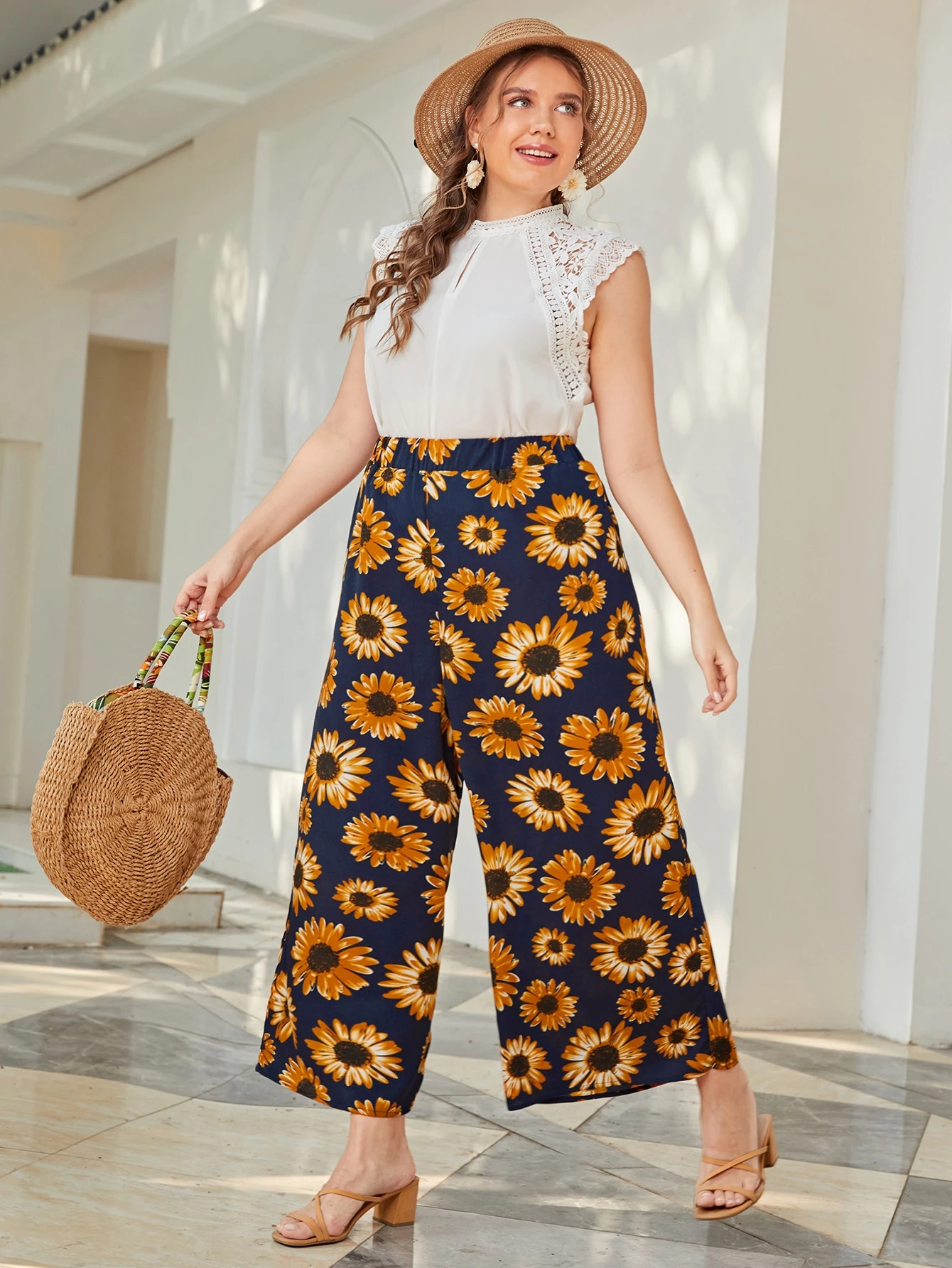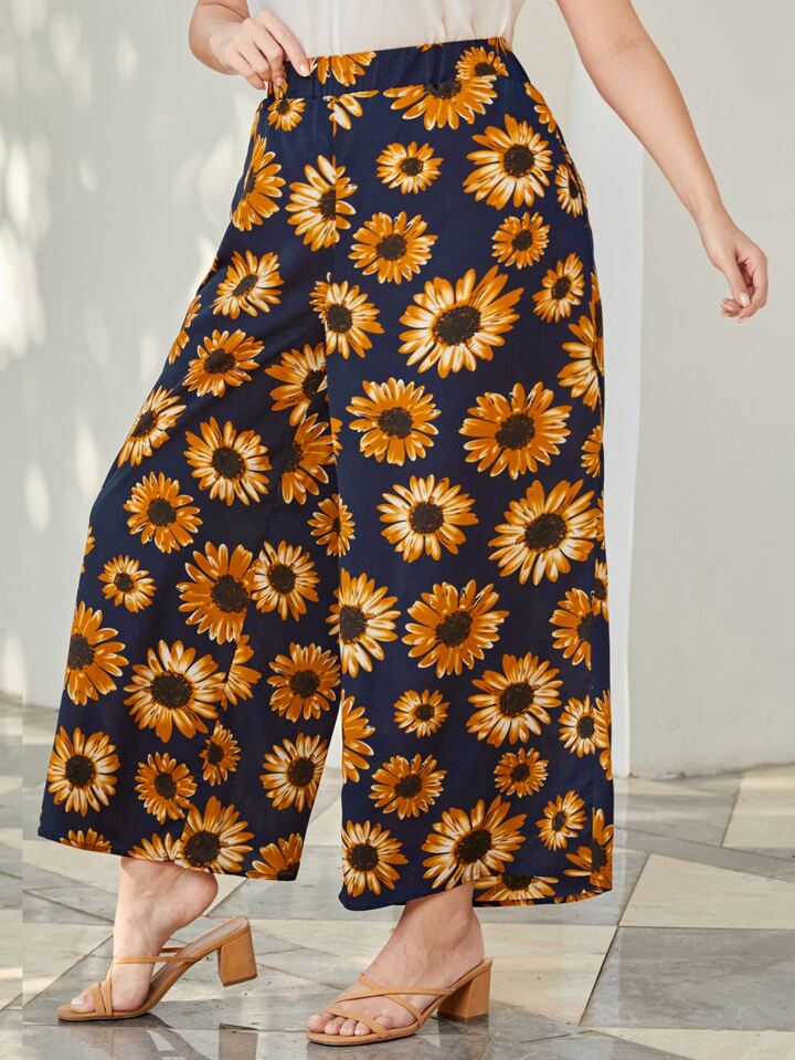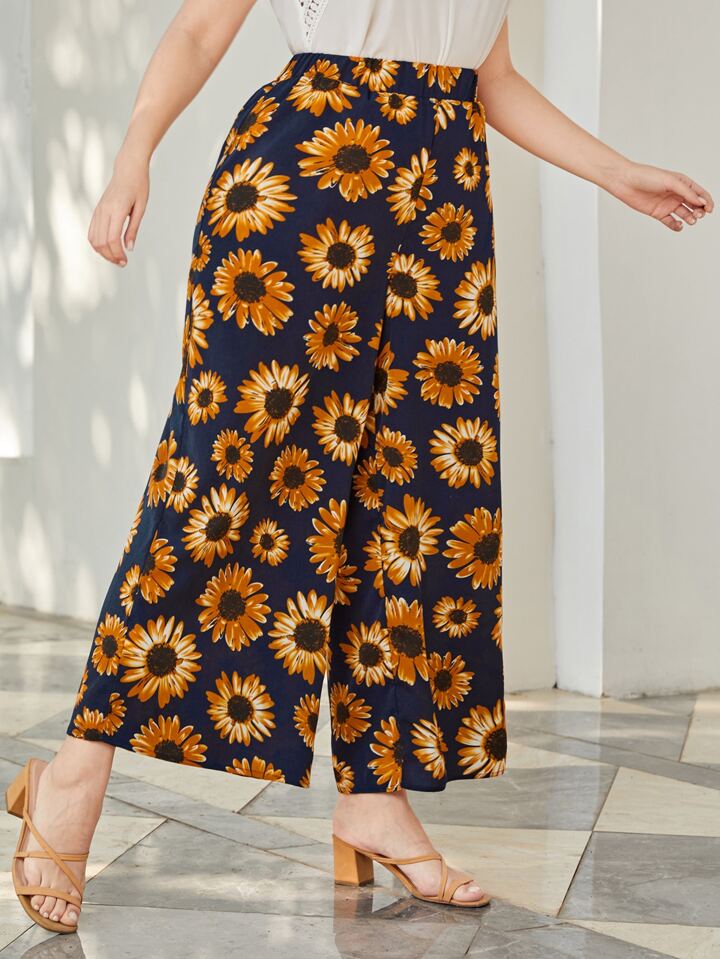 Pantalones de pierna ancha con girasol