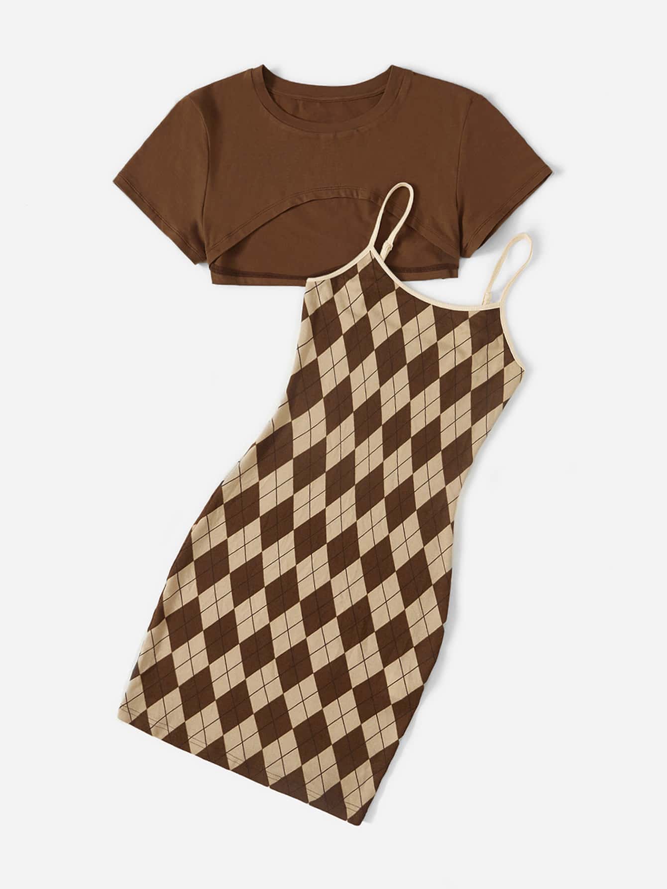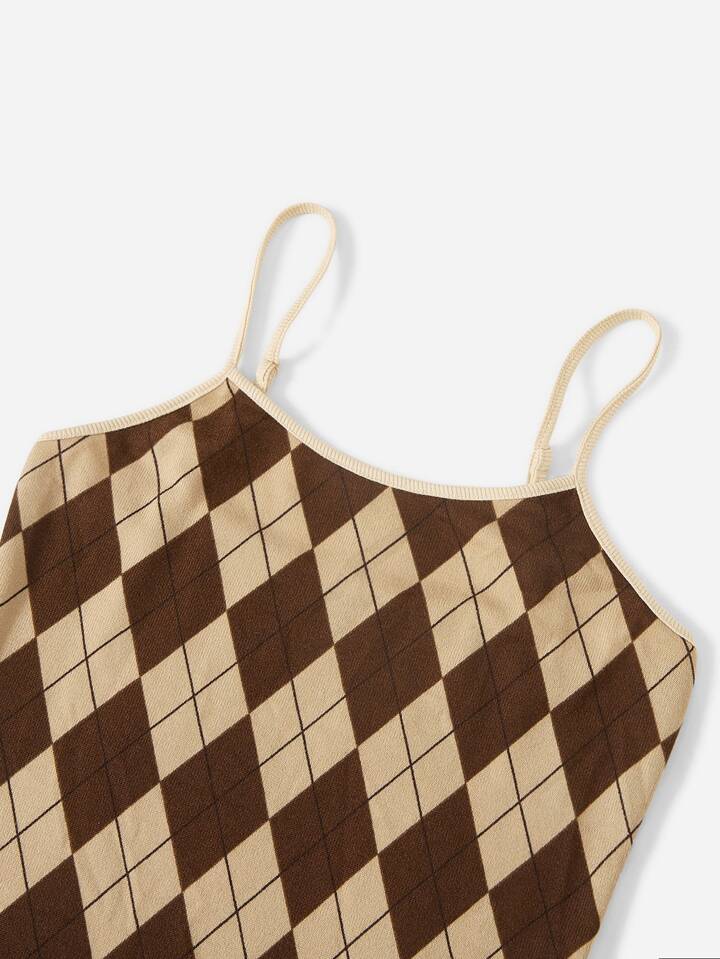 Vestido de tirantes con estampado de argyle y top corto crop top, para verano