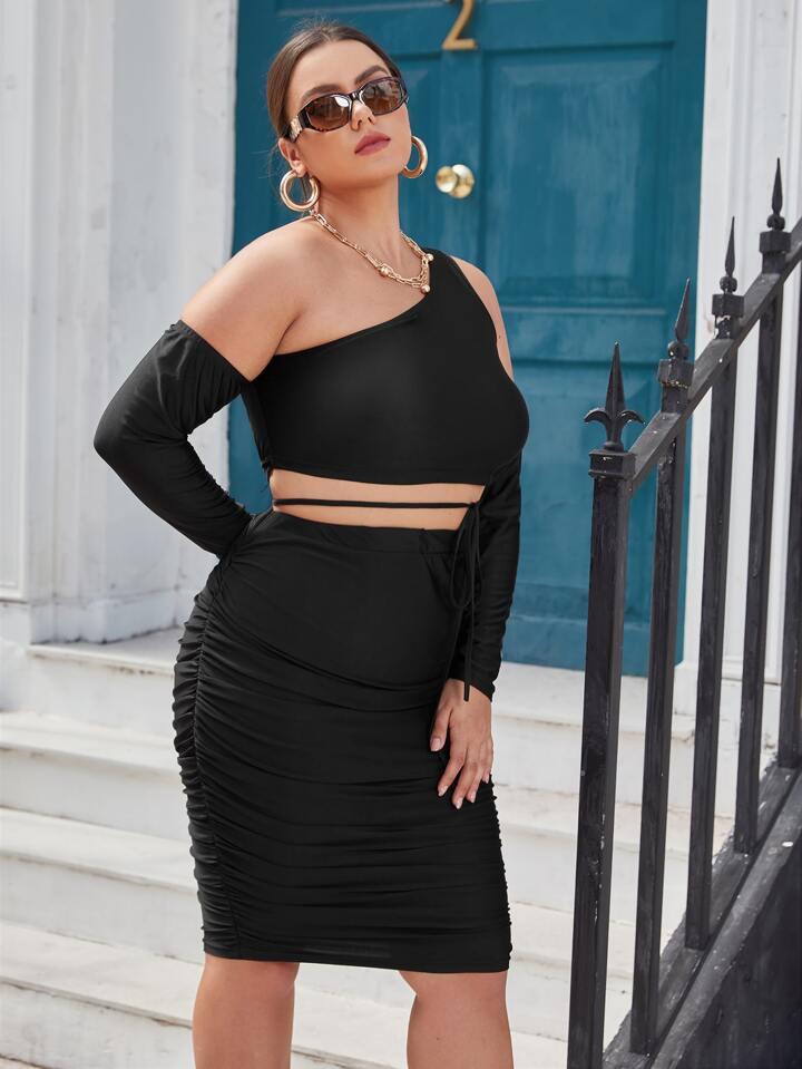 de cuello asimétrico con nudo delantero Top corto & Falda ajustada