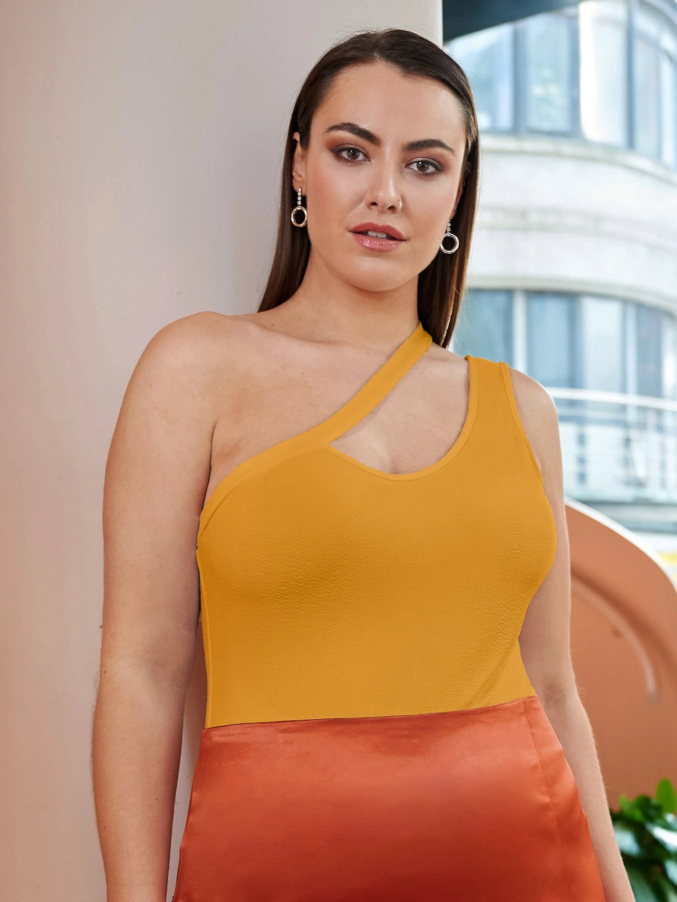 Body de cuello asimétrico unicolor
