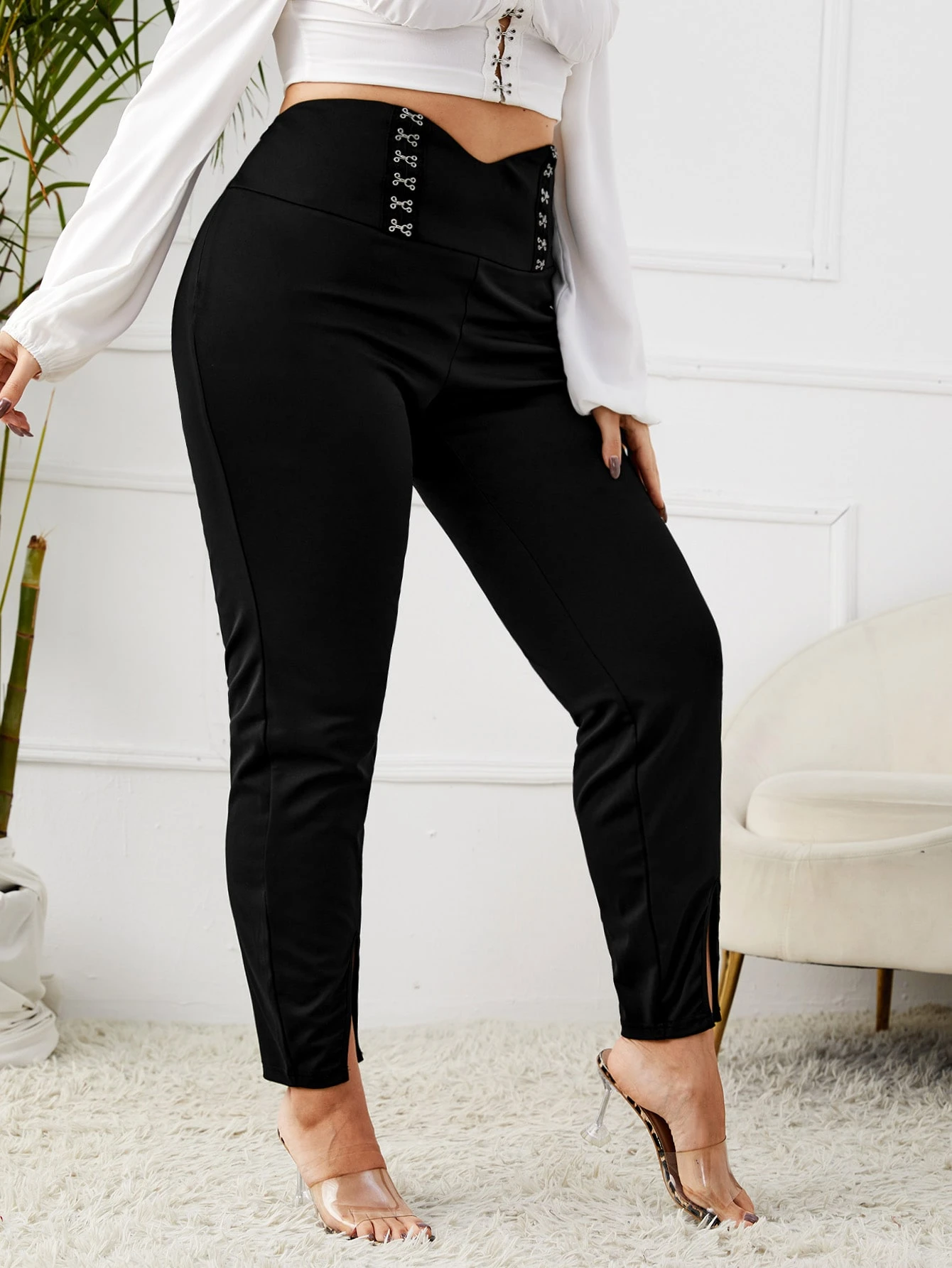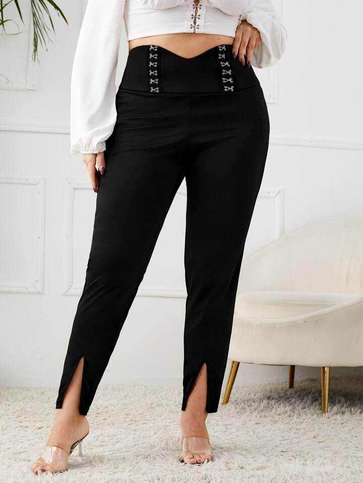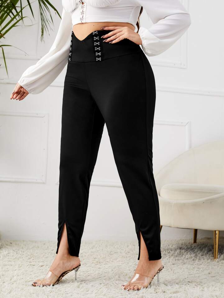 Pantalones de cintura asimétrica con corchete bajo con abertura