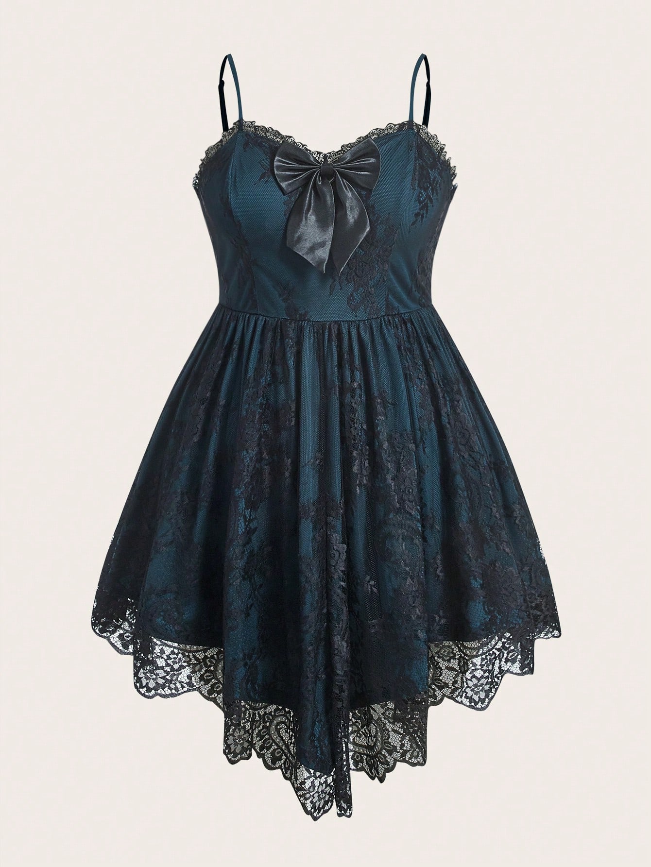 Vestido de tirantes con lazo delantero con encaje en contraste