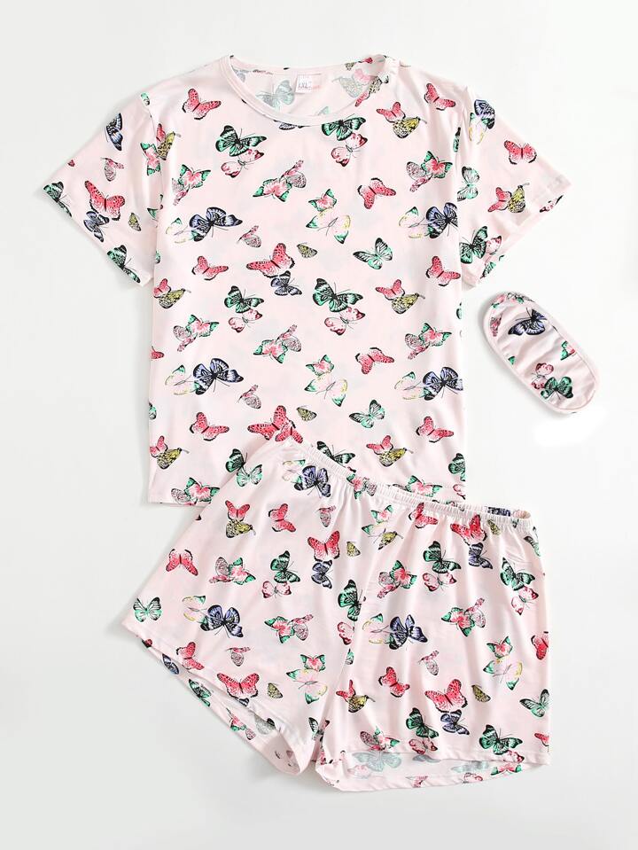 Conjunto de pijama con estampado de mariposa con cubierta de ojo
