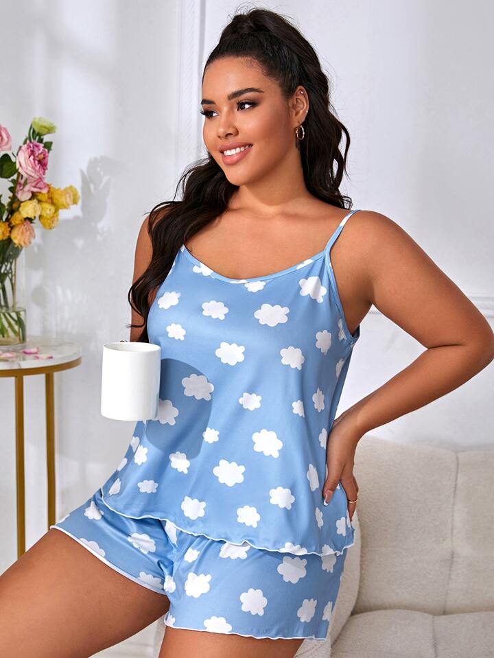 Conjunto de pijama con top de camiseta y pantalones cortos con estampado de nube talla grande