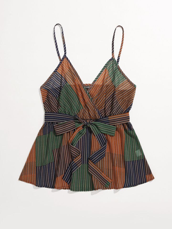 Top de tirantes con cinturón de color combinado