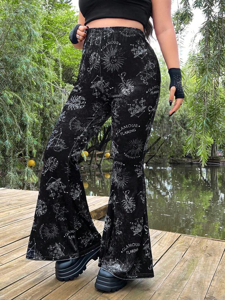Talla grande Pantalones acampanados constelación & con estampado de sol sin cinturón