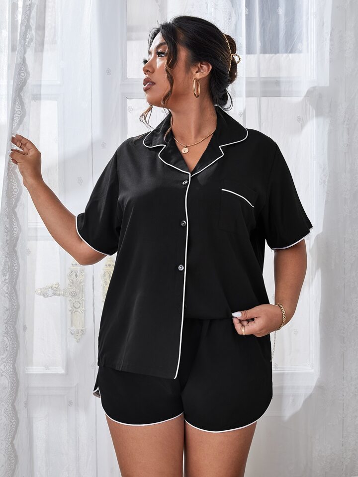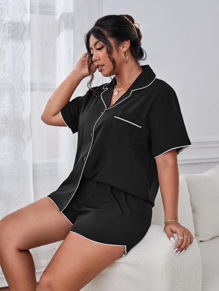 Conjunto de pijama ribete en contraste con parche con bolsillo
