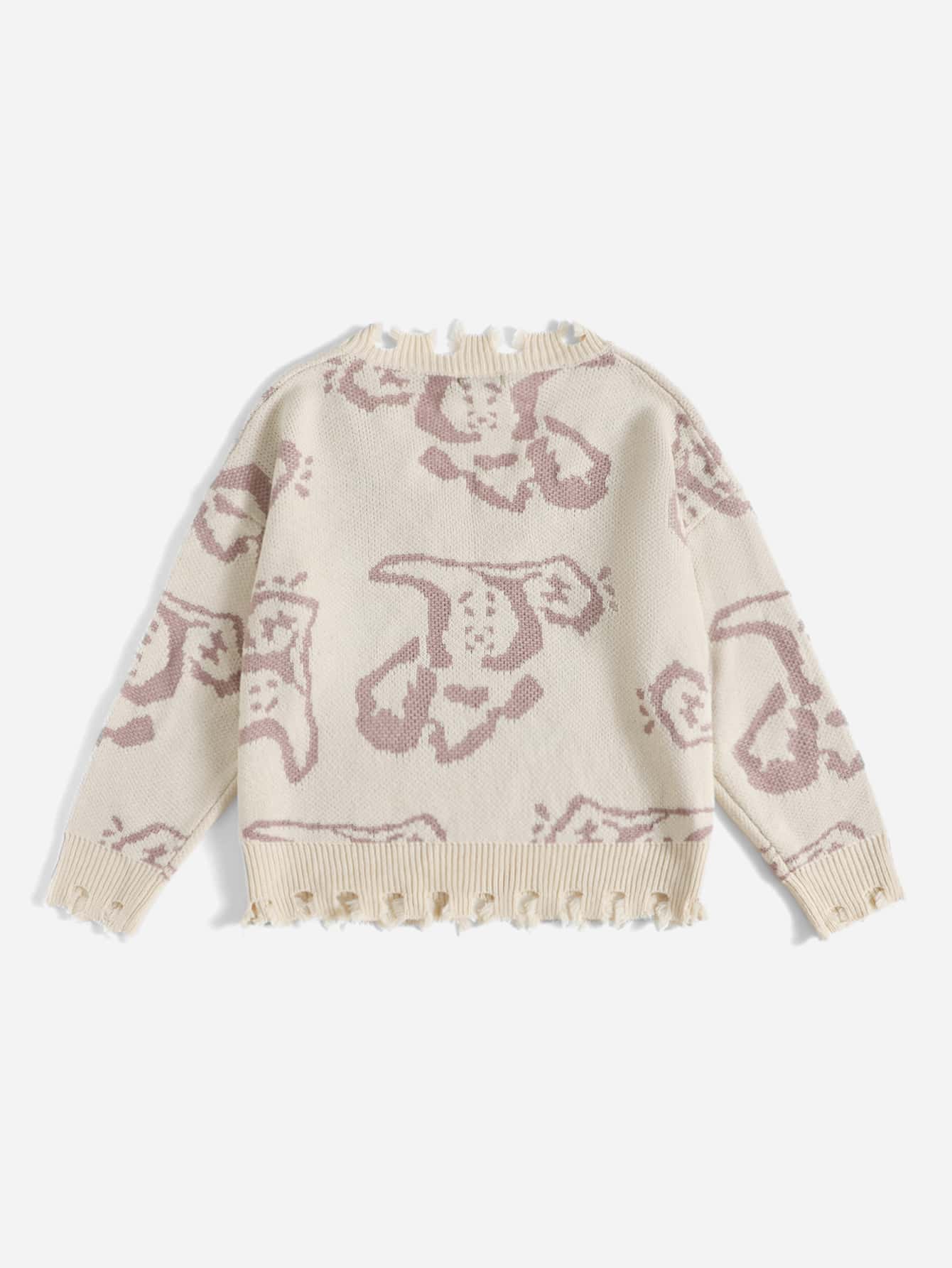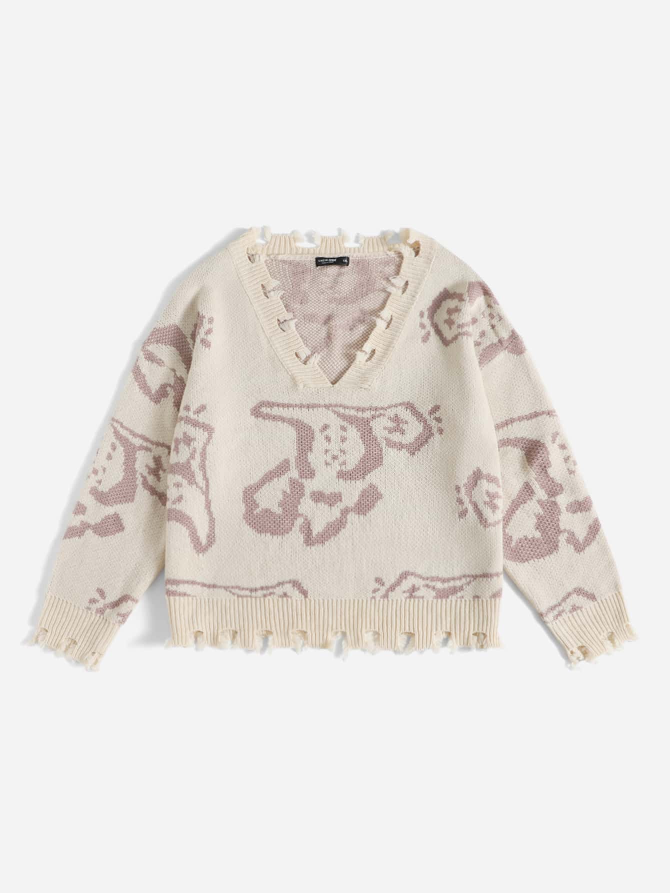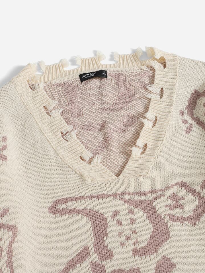 Suéter De Patrón Gráfico Con Recorte En El Dobladillo Crudo, Para Tallas Grandes