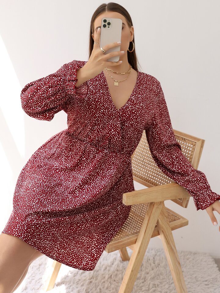 Vestido con estampado de lunares escote cruzado de manga con volante