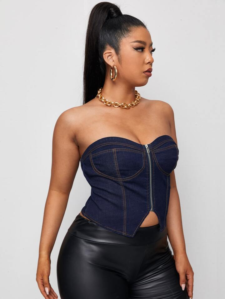 Top mezclilla bustier con cremallera