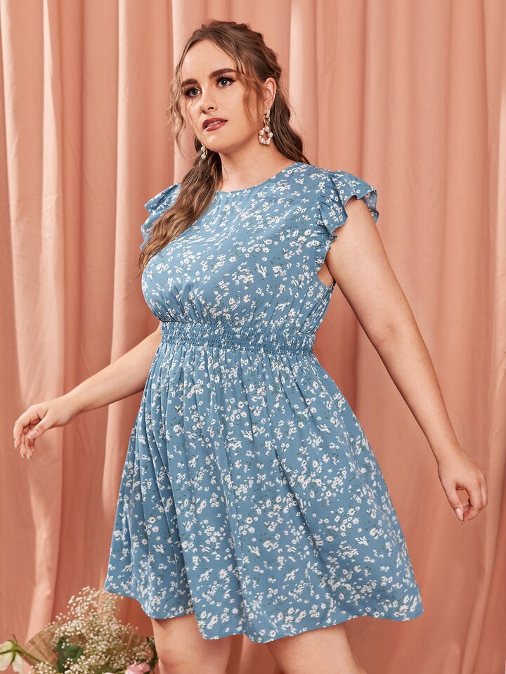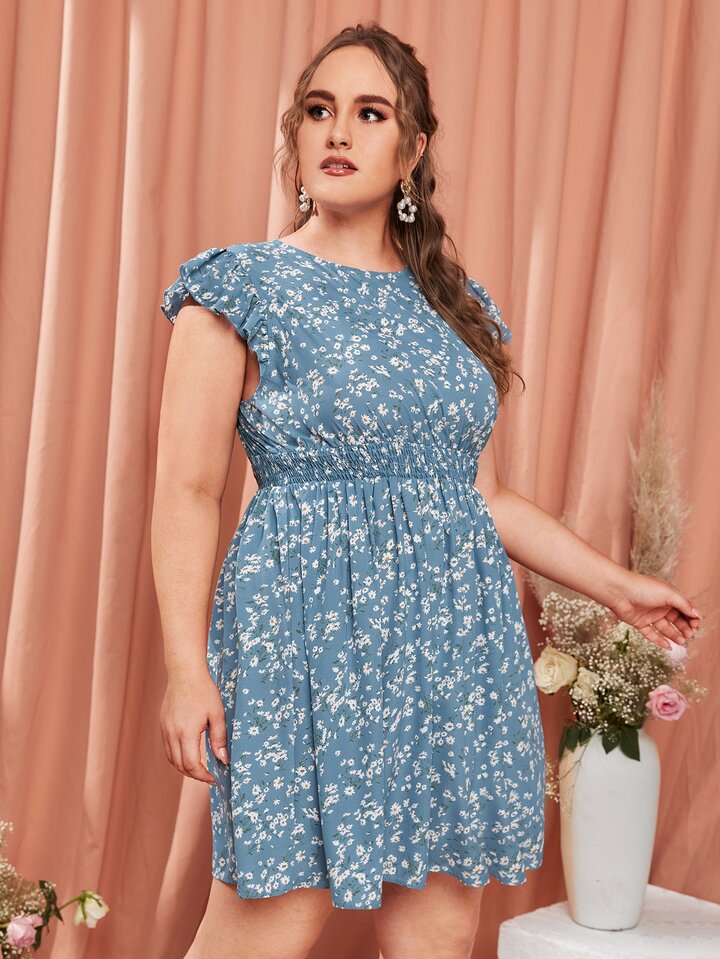 Vestido de cintura con fruncido con estampado floral de margaritas