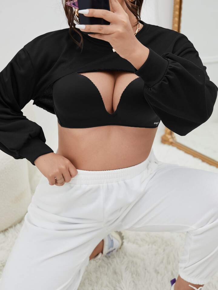 Pullover de hombros caídos súper corto sin sujetador
