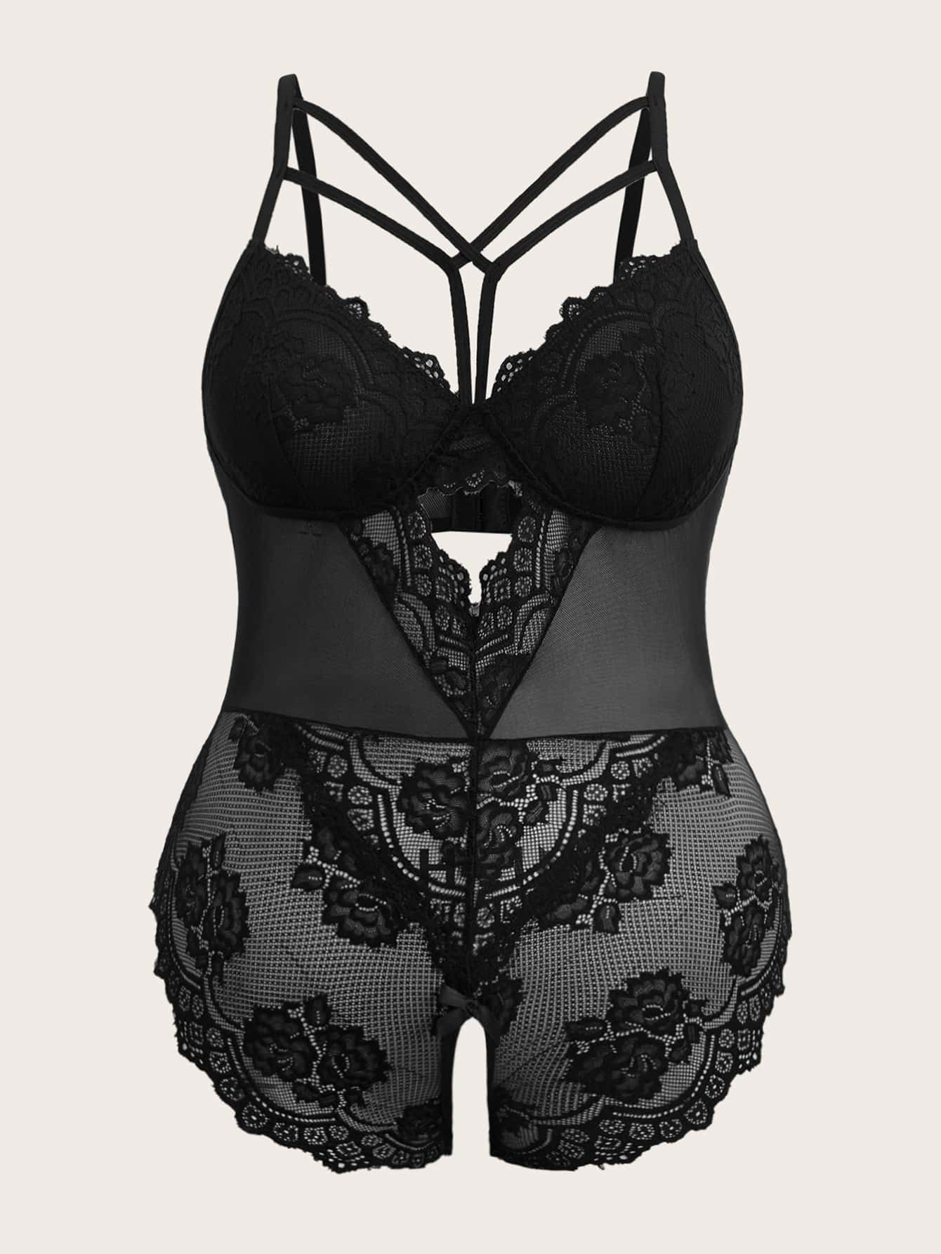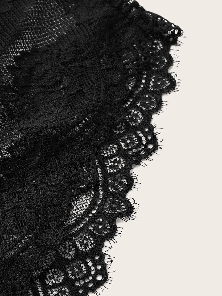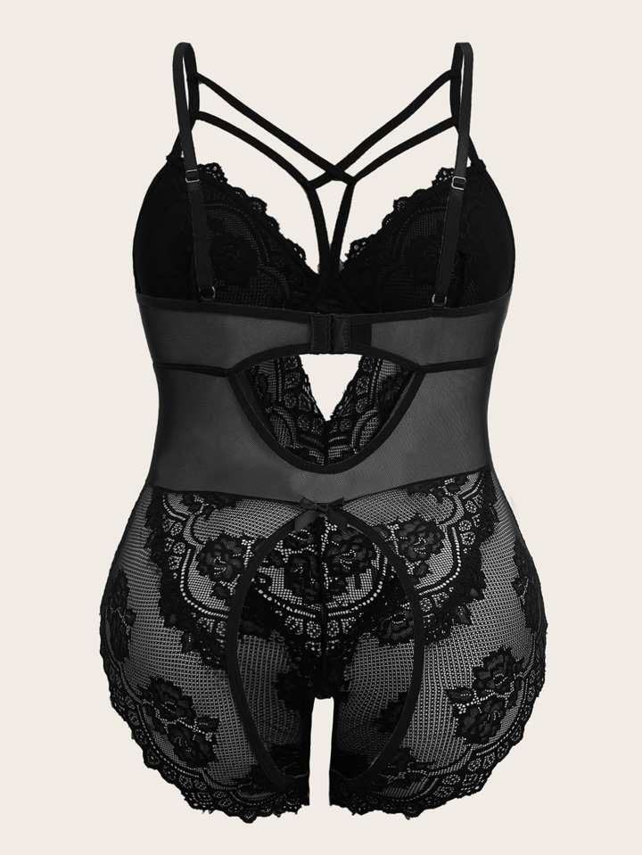Body teddy panel con encaje de pestaña con abertura sin entrepierna sin forro