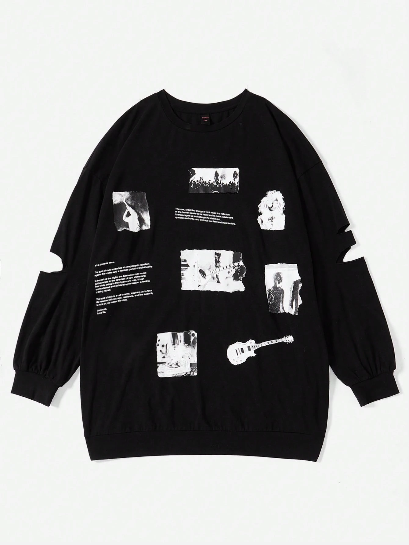 Talla grande Sudadera con estampado de figura y slogan de hombros caídos