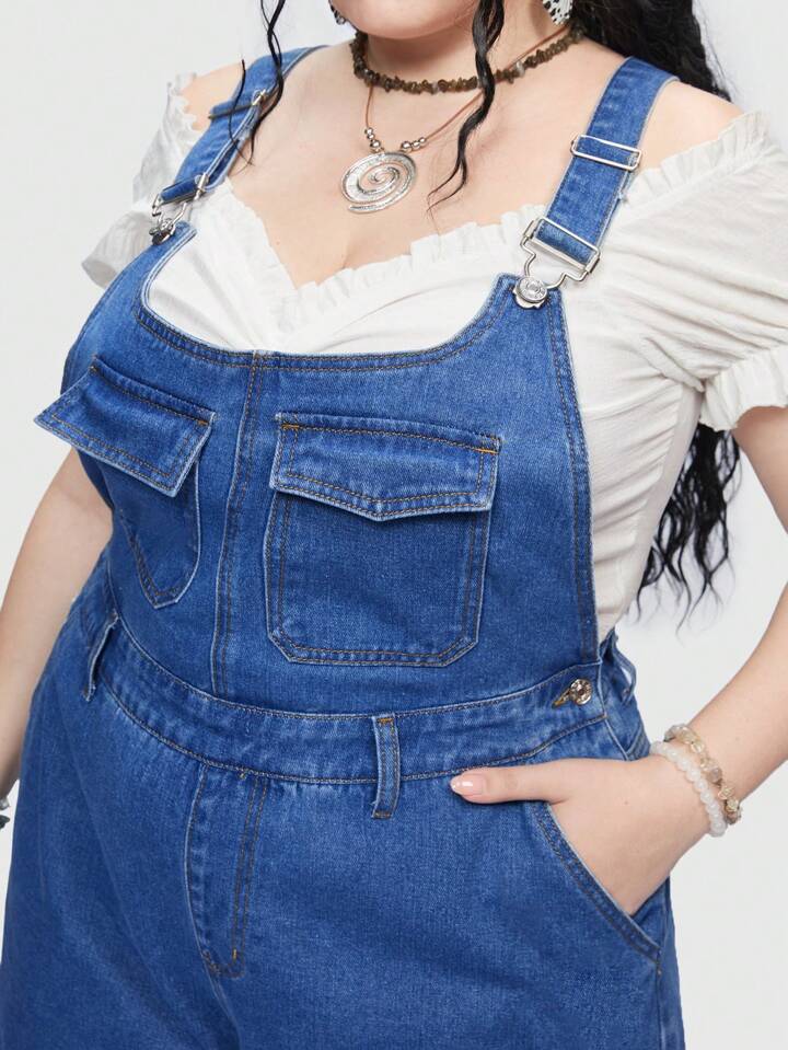 Peto vaquero sin cinturón con bolsillos con solapa en la parte delantera, para escuela