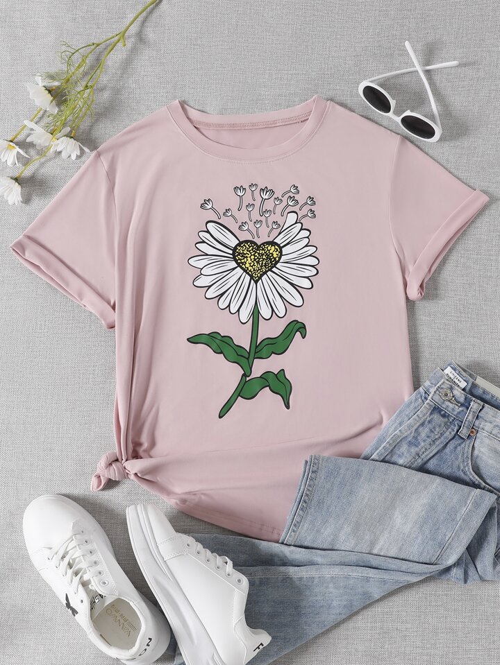 Camisetas de Tallas grandes Floral Casual