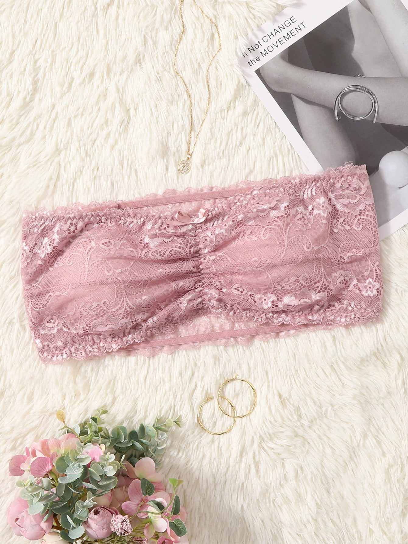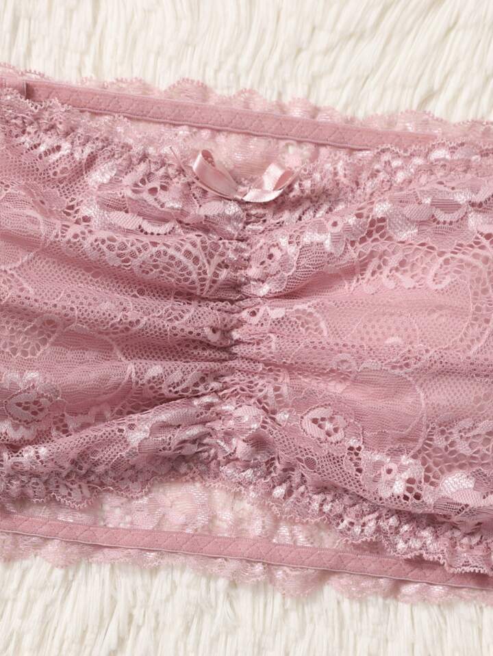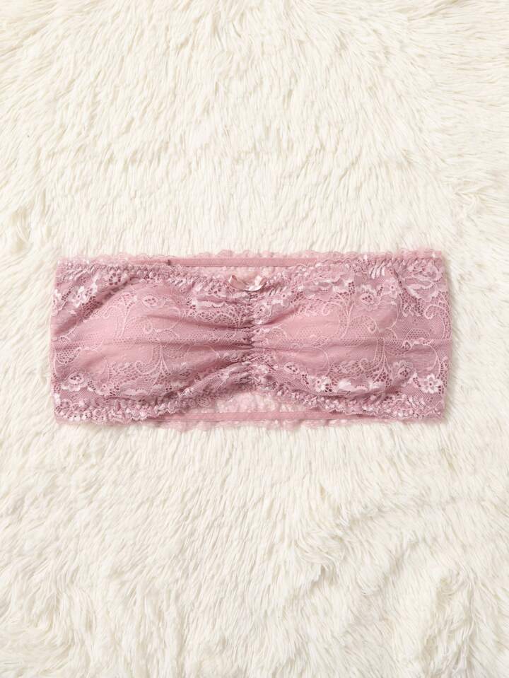 Sujetador con encaje floral fruncido tubo