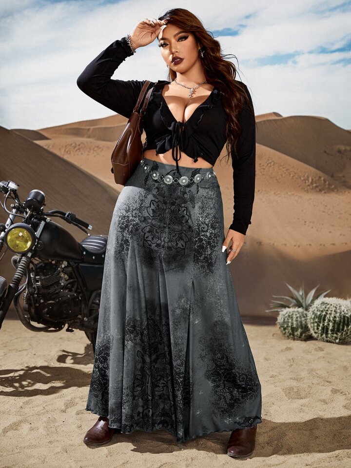 Falda con estampado floral y borde de lechuga, para la escuela (tallas grandes)