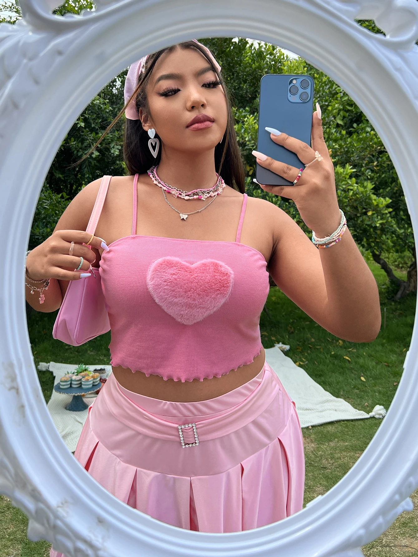 Top de tirantes de peluche con patrón de corazón ribete en forma de lechuga