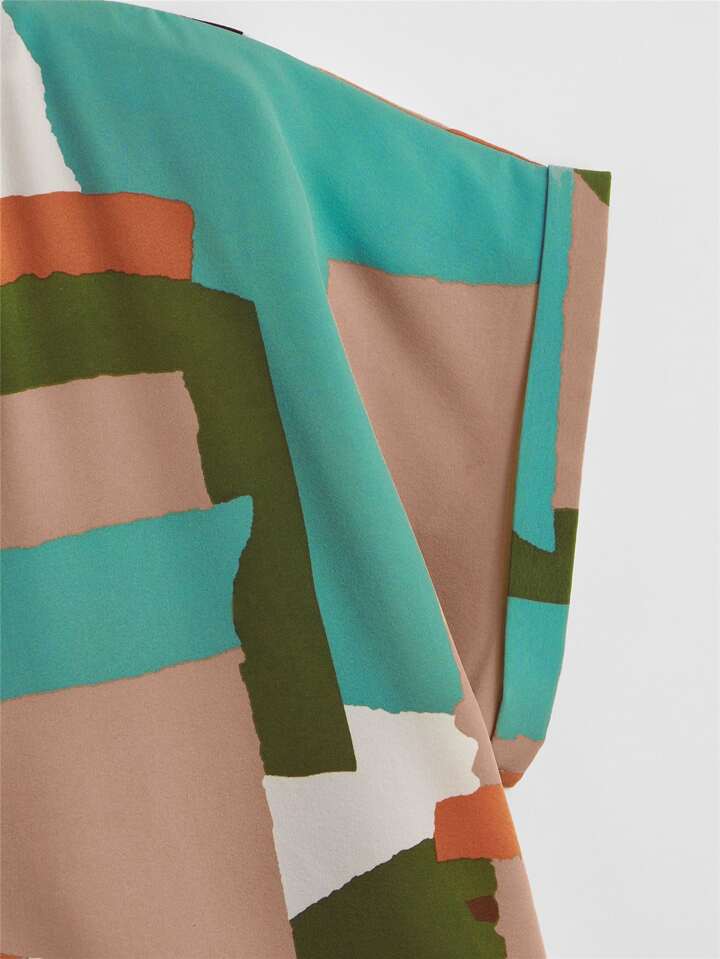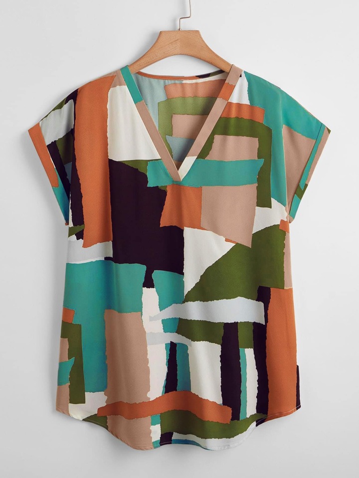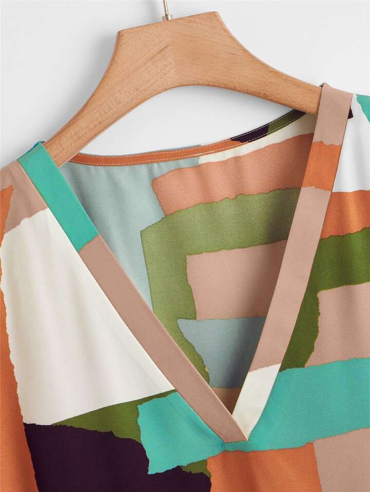 Blusa con estampado de dibujo de manga murciélago escote V
