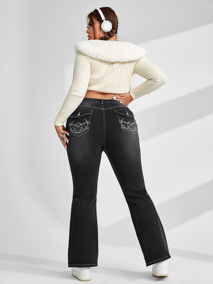 Jeans de pierna amplia con estampado de dibujo con bolsillo con solapa