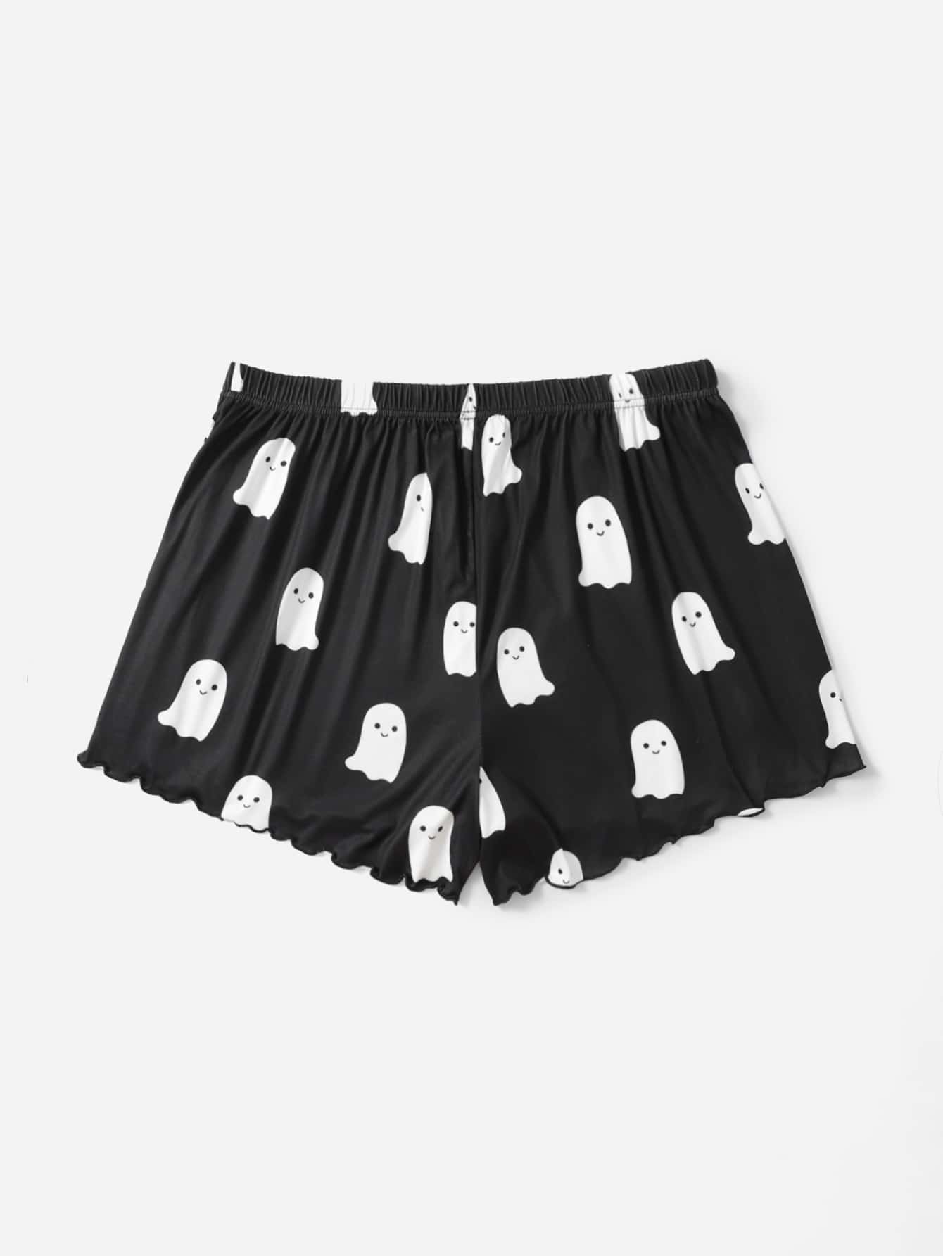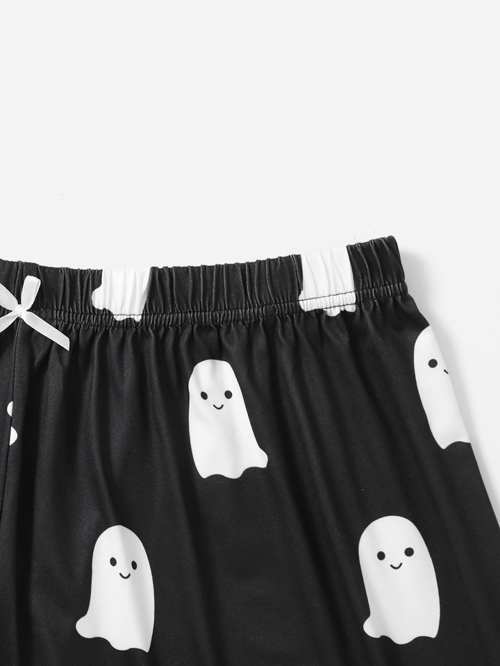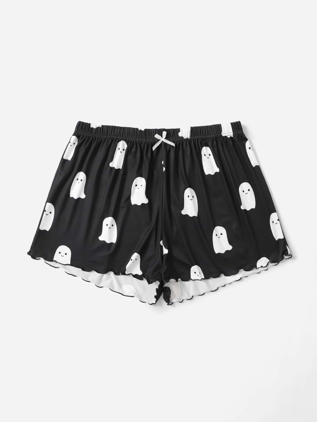 Shorts de dormir con estampado de halloween ribete en forma de lechuga
