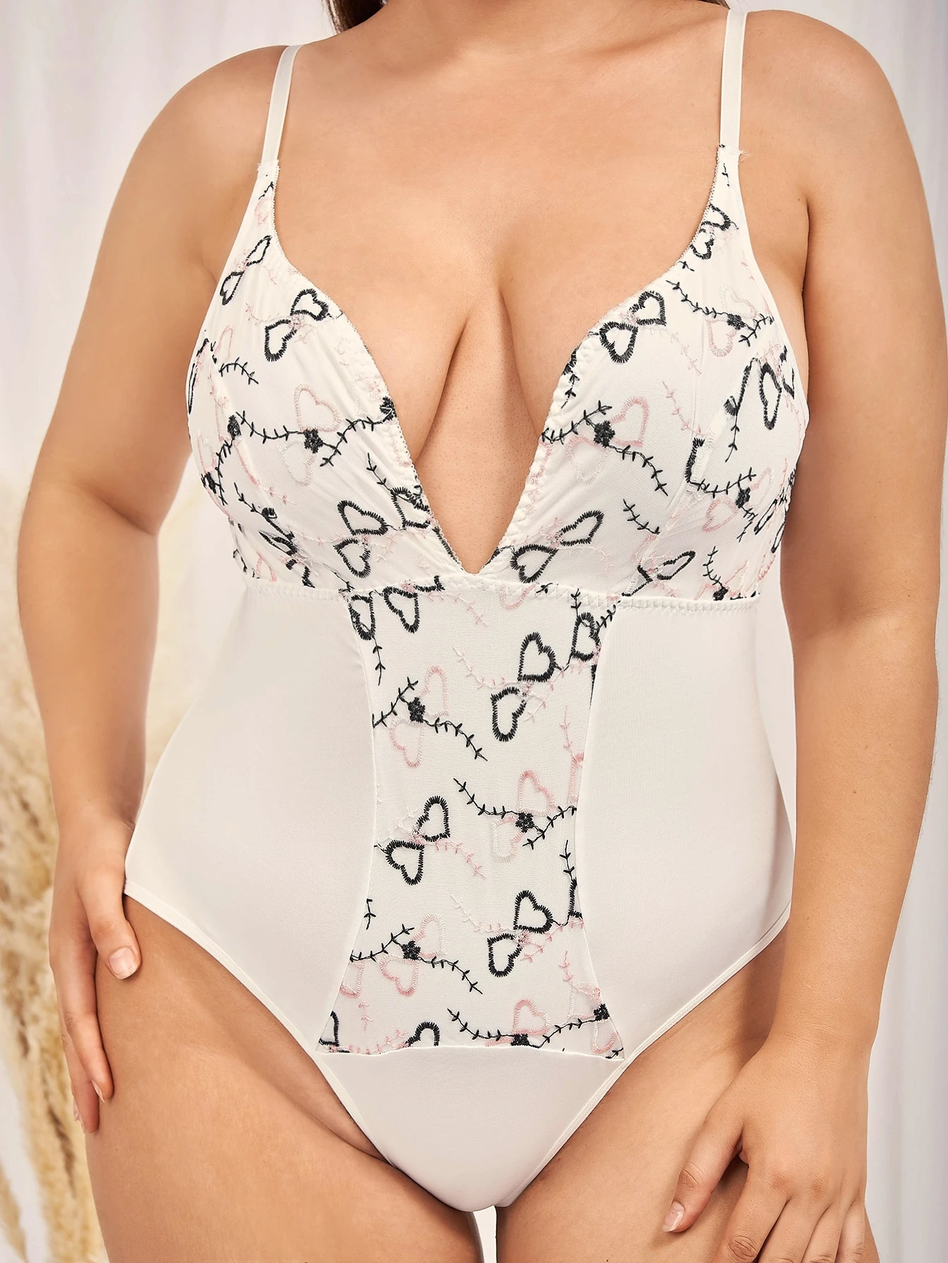 Body teddy con bordado de corazón