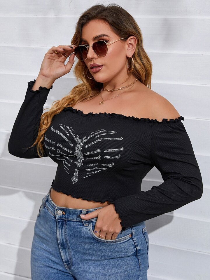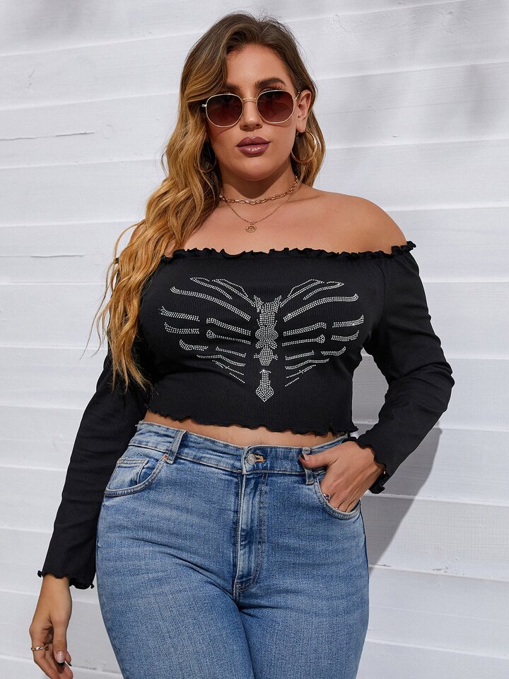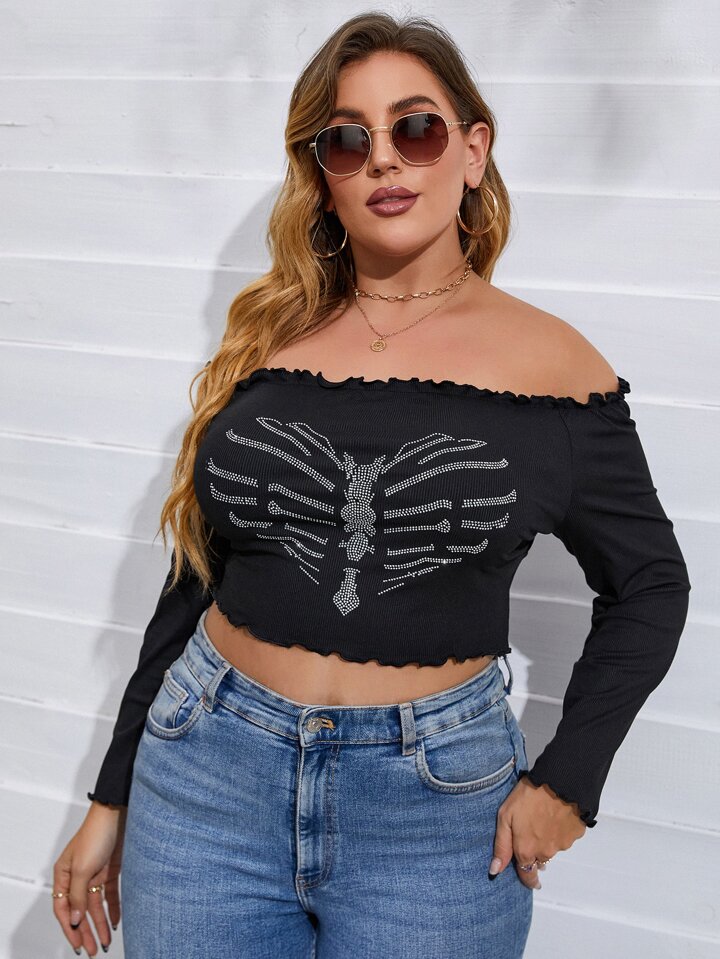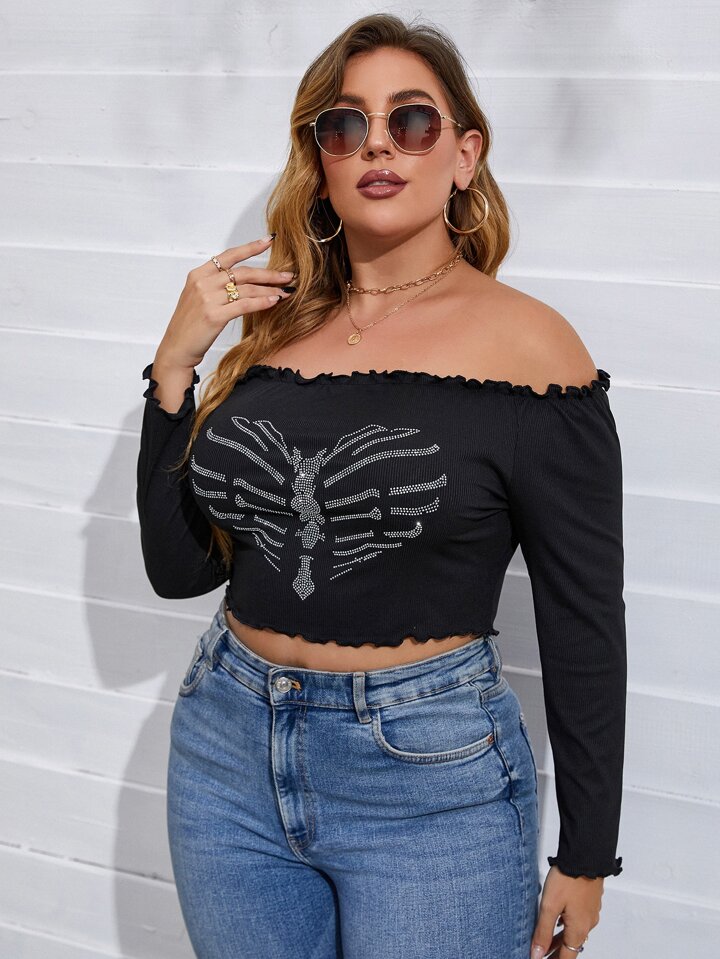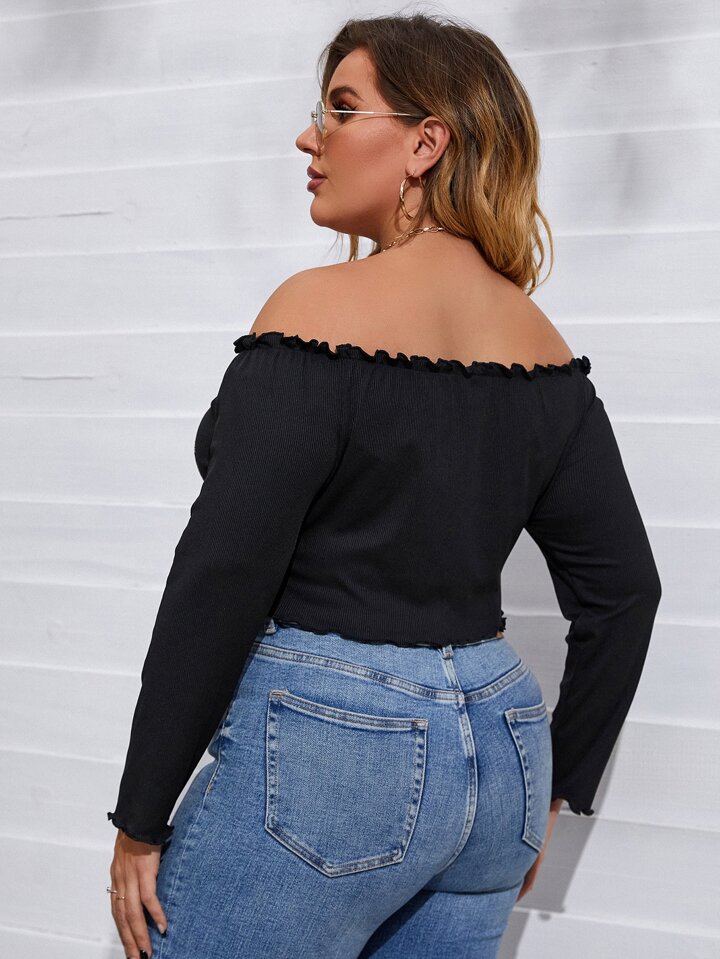Camiseta corta con corazón ribete en forma de lechuga de hombros descubiertos