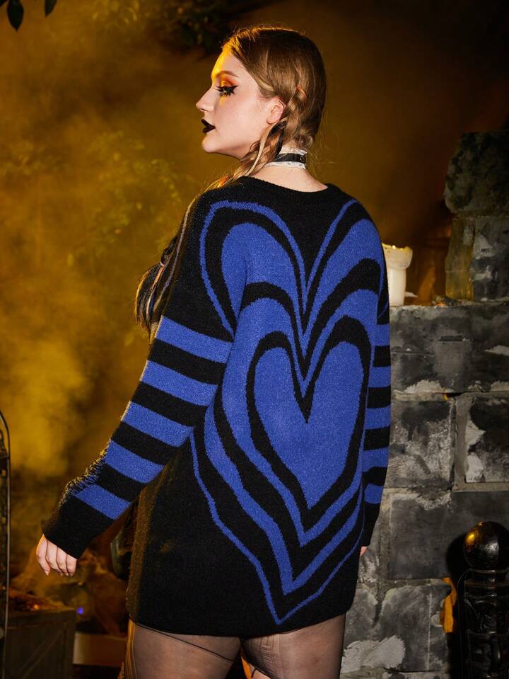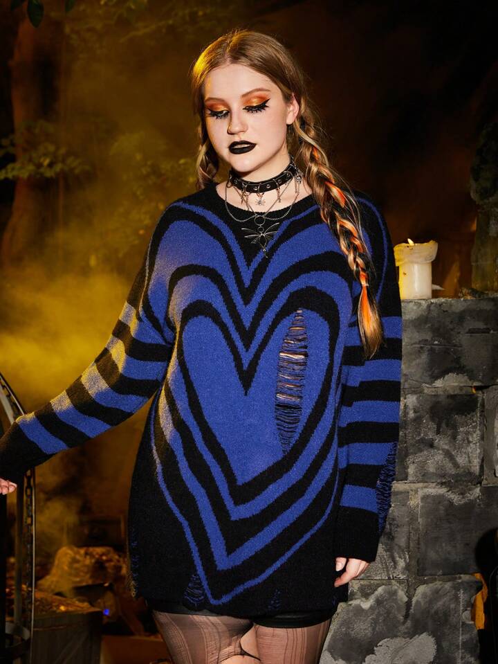 Talla grande Jersey con patrón de corazón de hombros caídos desgarro