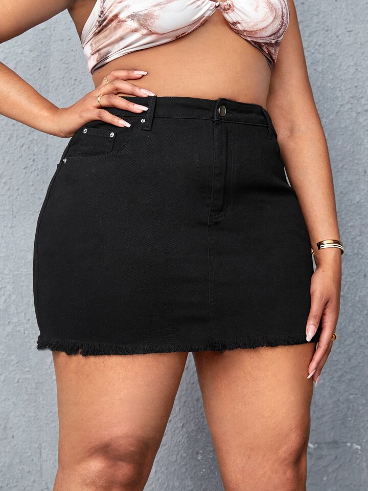 Falda en mezclilla de talle alto ribete sin dobladillo