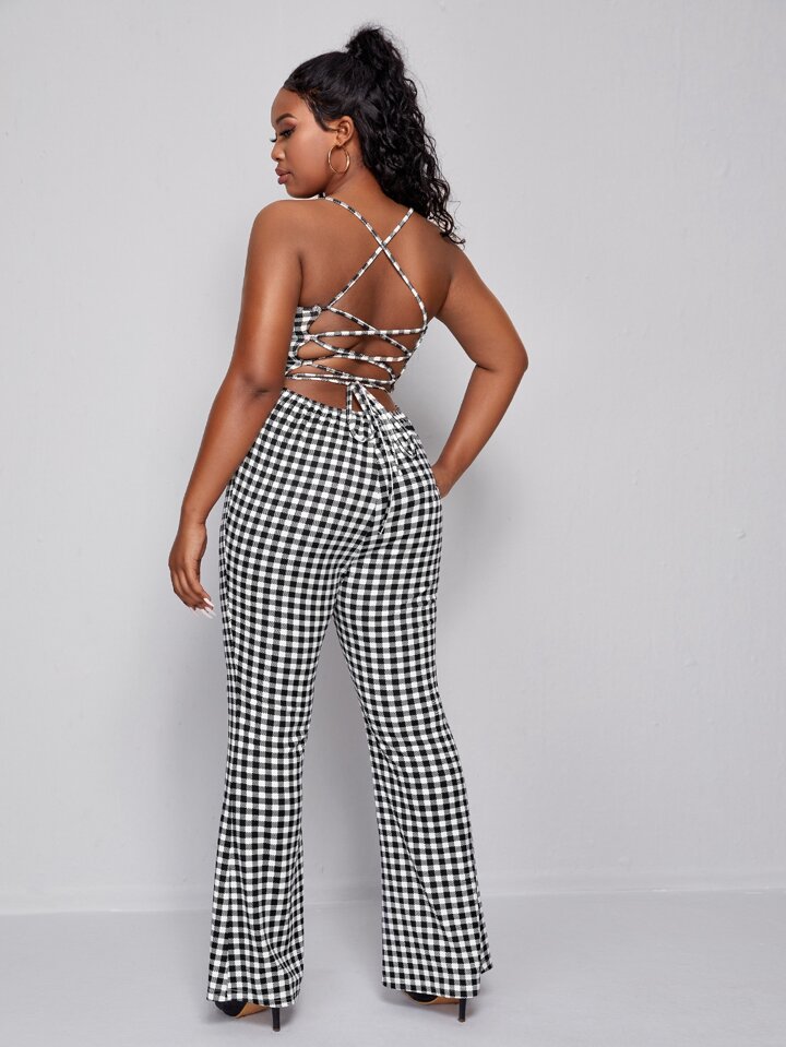 Mono de espalda abierta con cordón pierna amplia de guingán