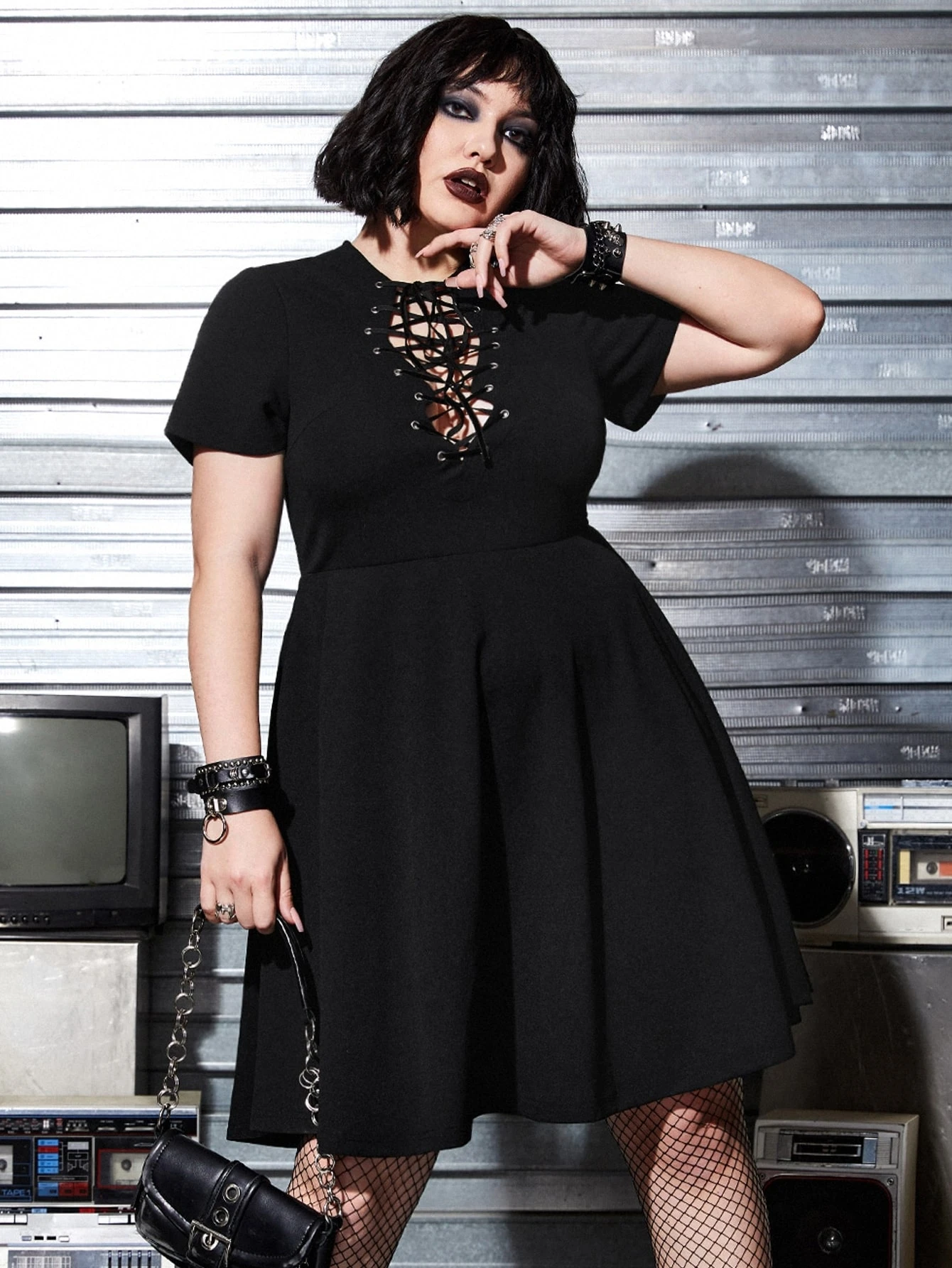 Vestido con cordón delantero bajo amplio