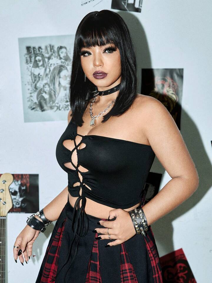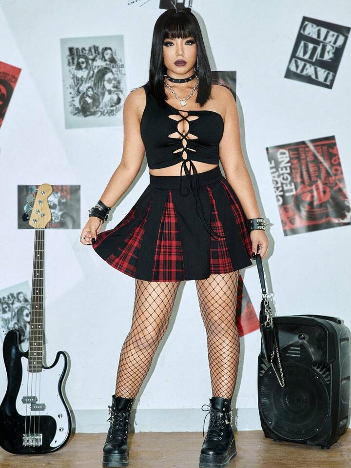 Top de un hombro con cordones delanteros, de verano