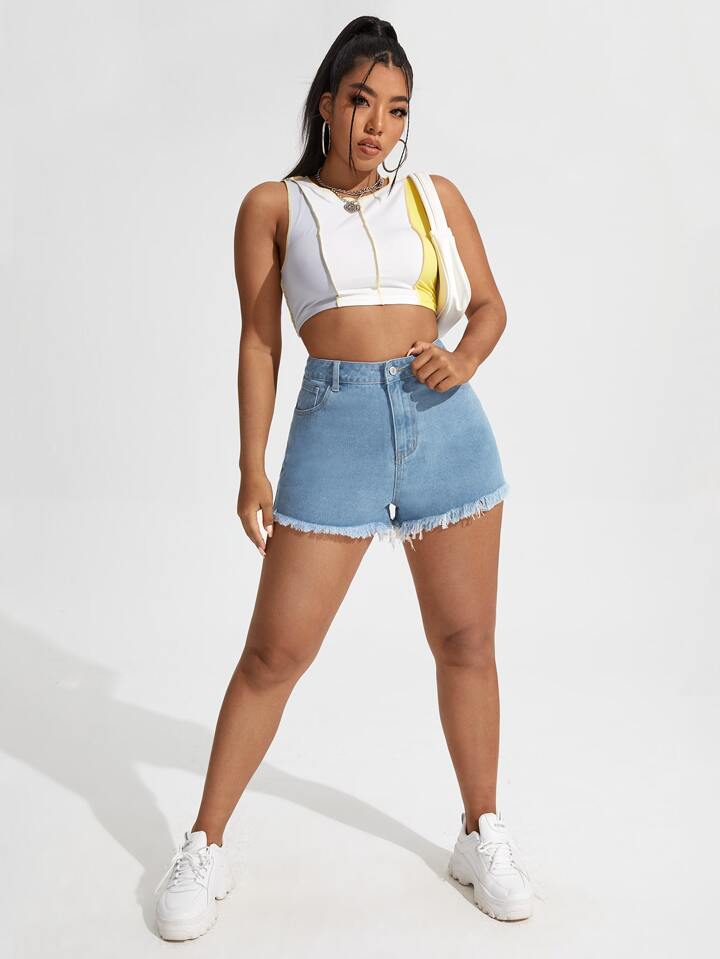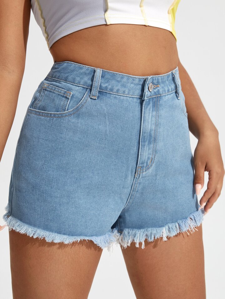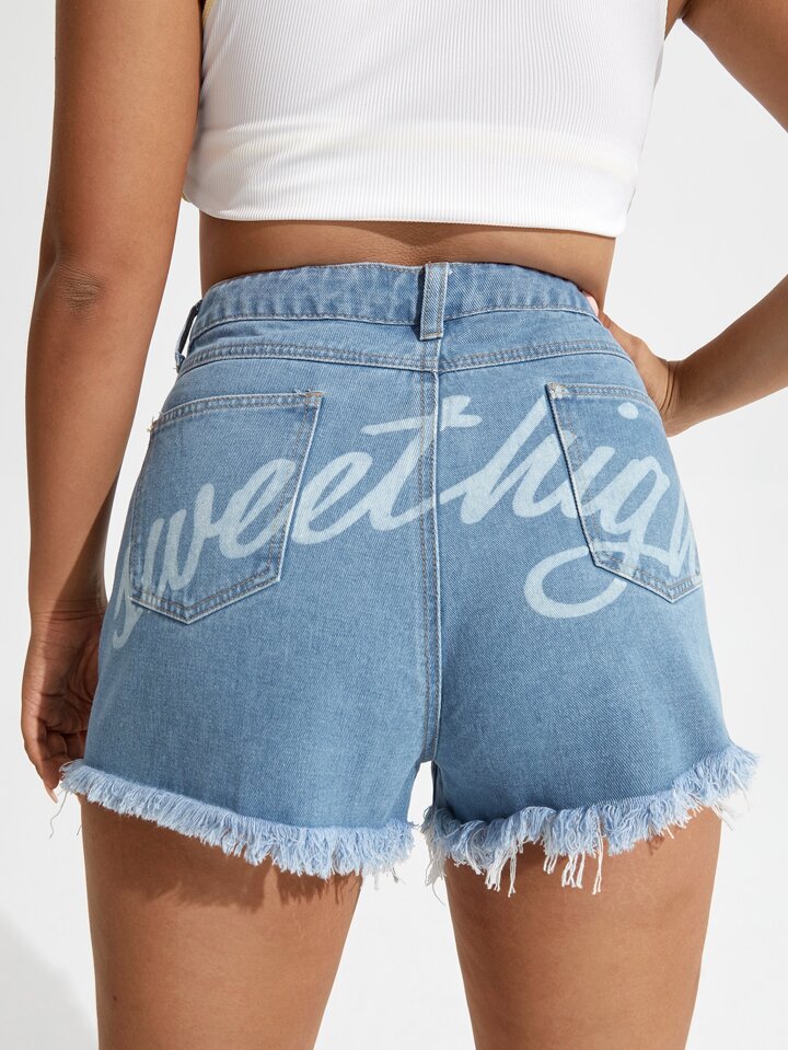Shorts en mezclilla con estampado de letra bajo crudo