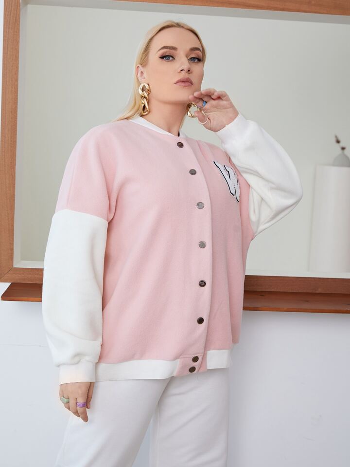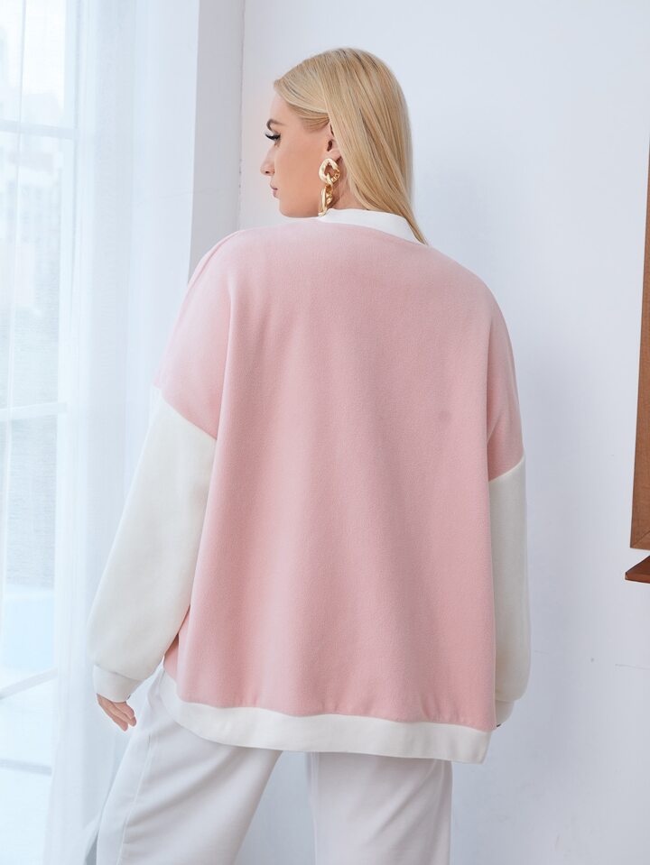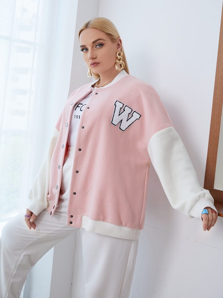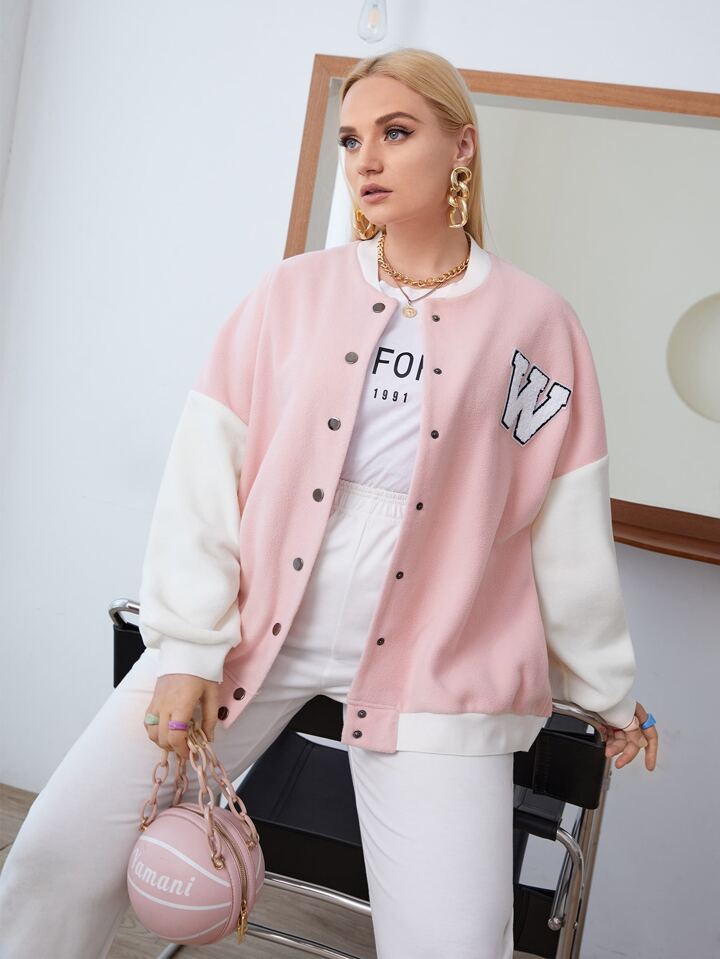Cazadora tipo bomber con parche de letra de hombros caídos teddy