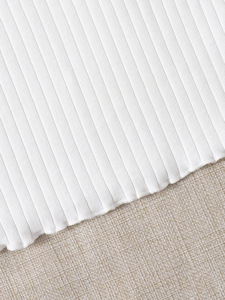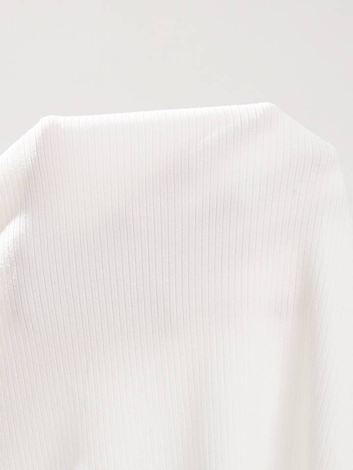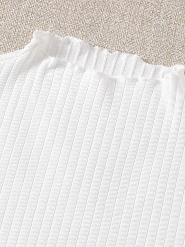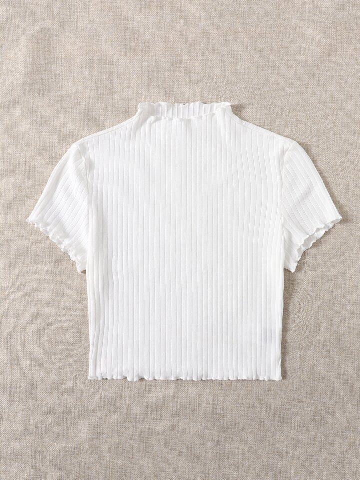 Camiseta tejida de canalé ribete en forma de lechuga de cuello alto