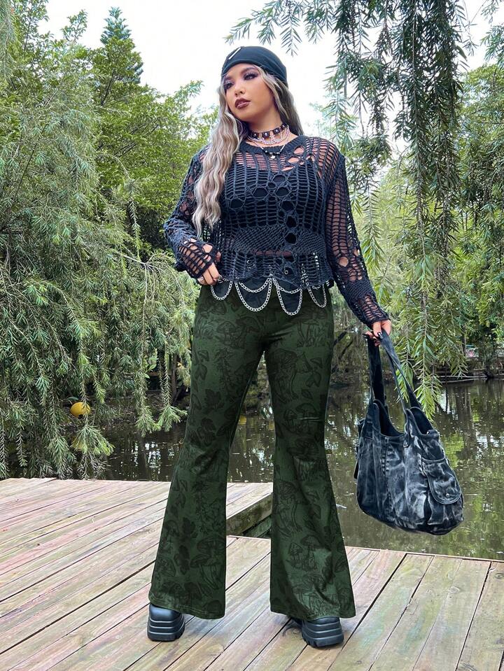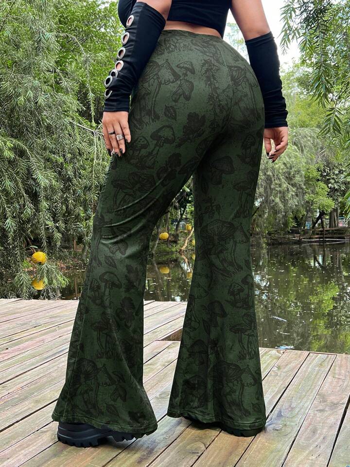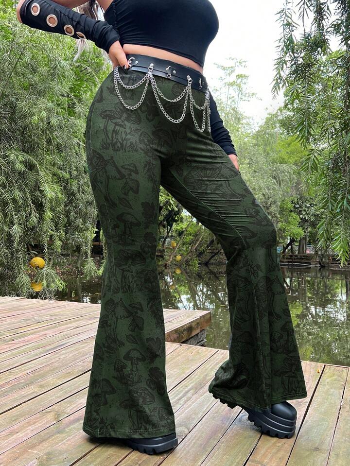 Talla grande Pantalones acampanados con estampado de seta sin cinturón