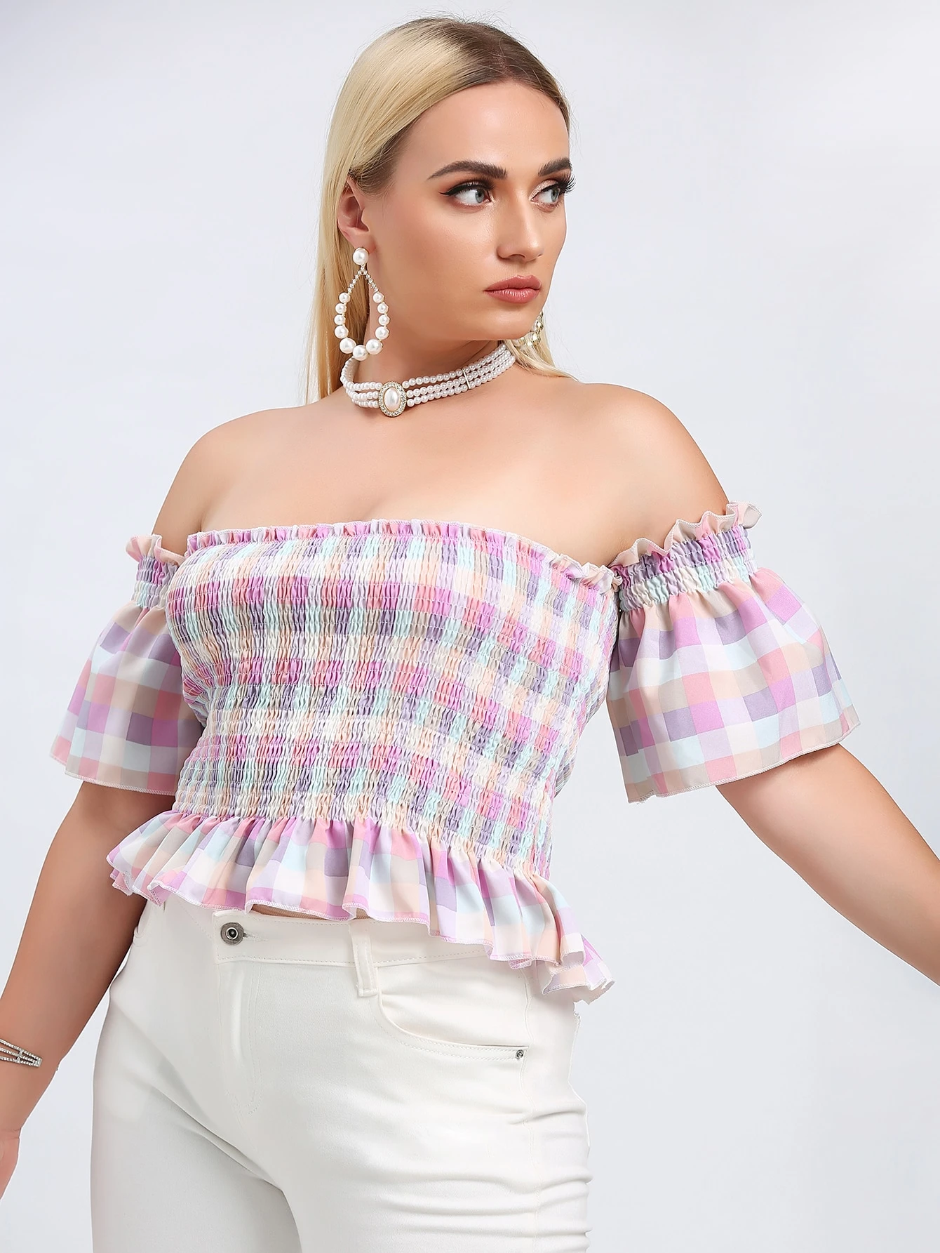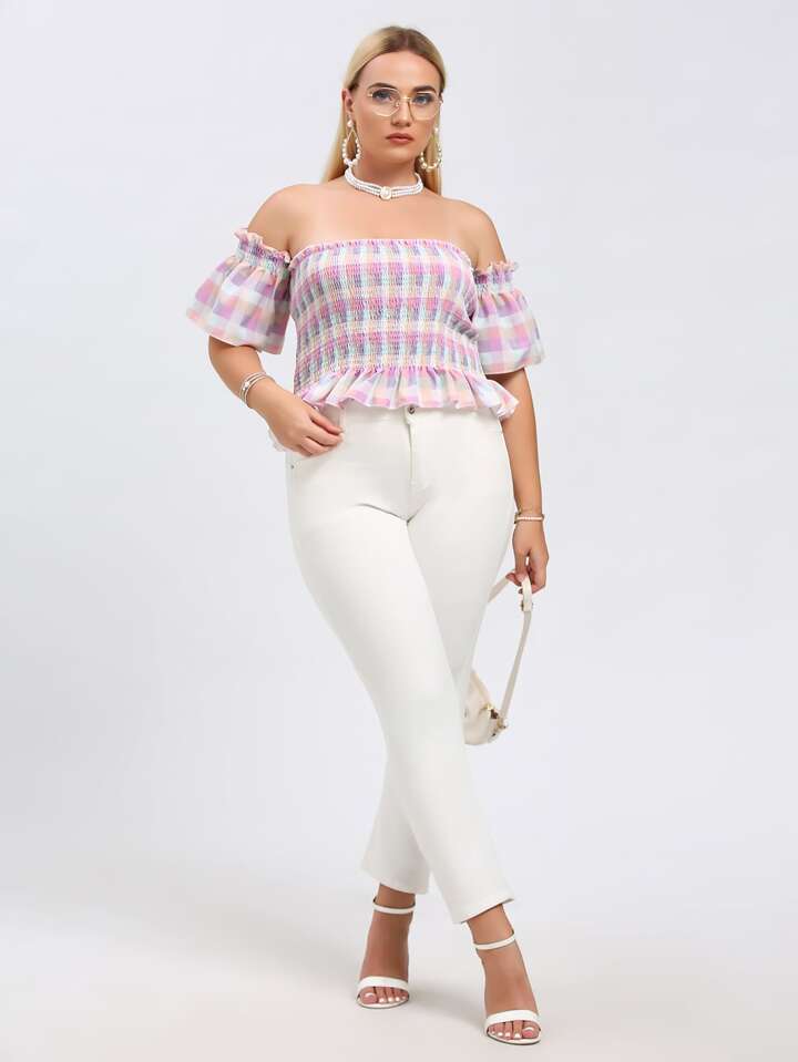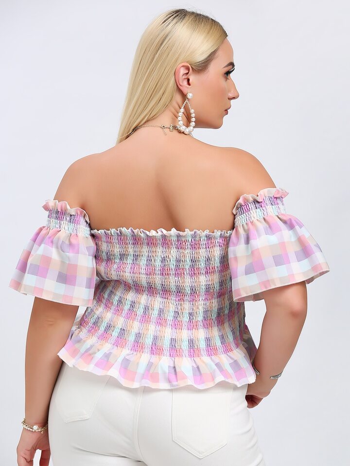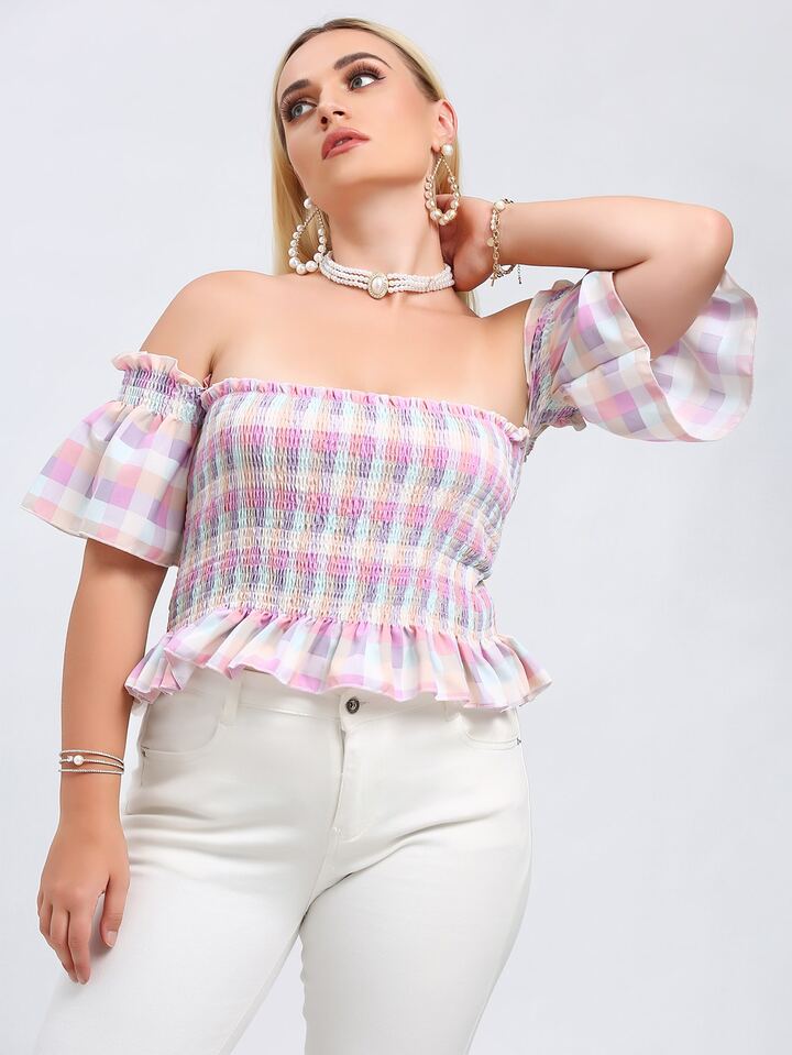 Camisa bajo fruncido de hombros descubiertos